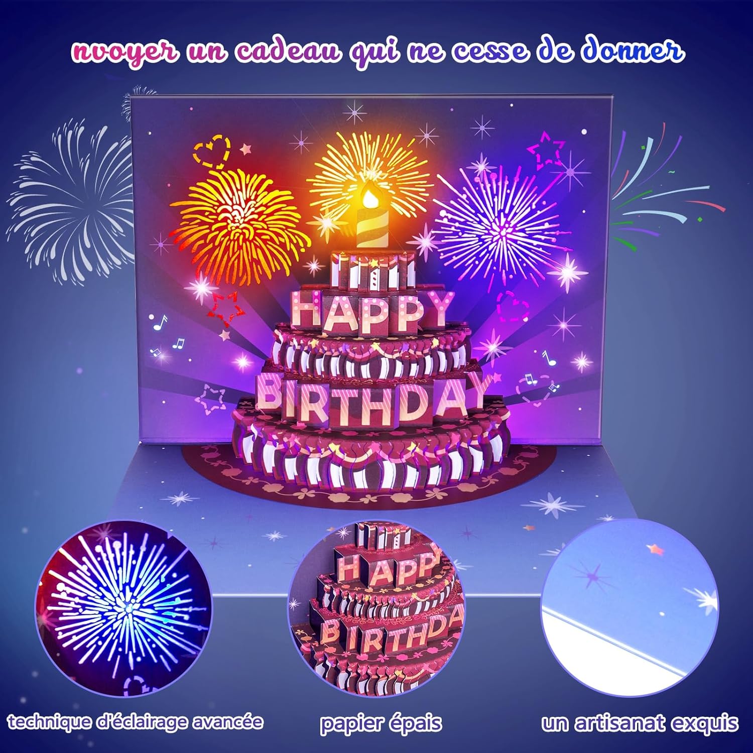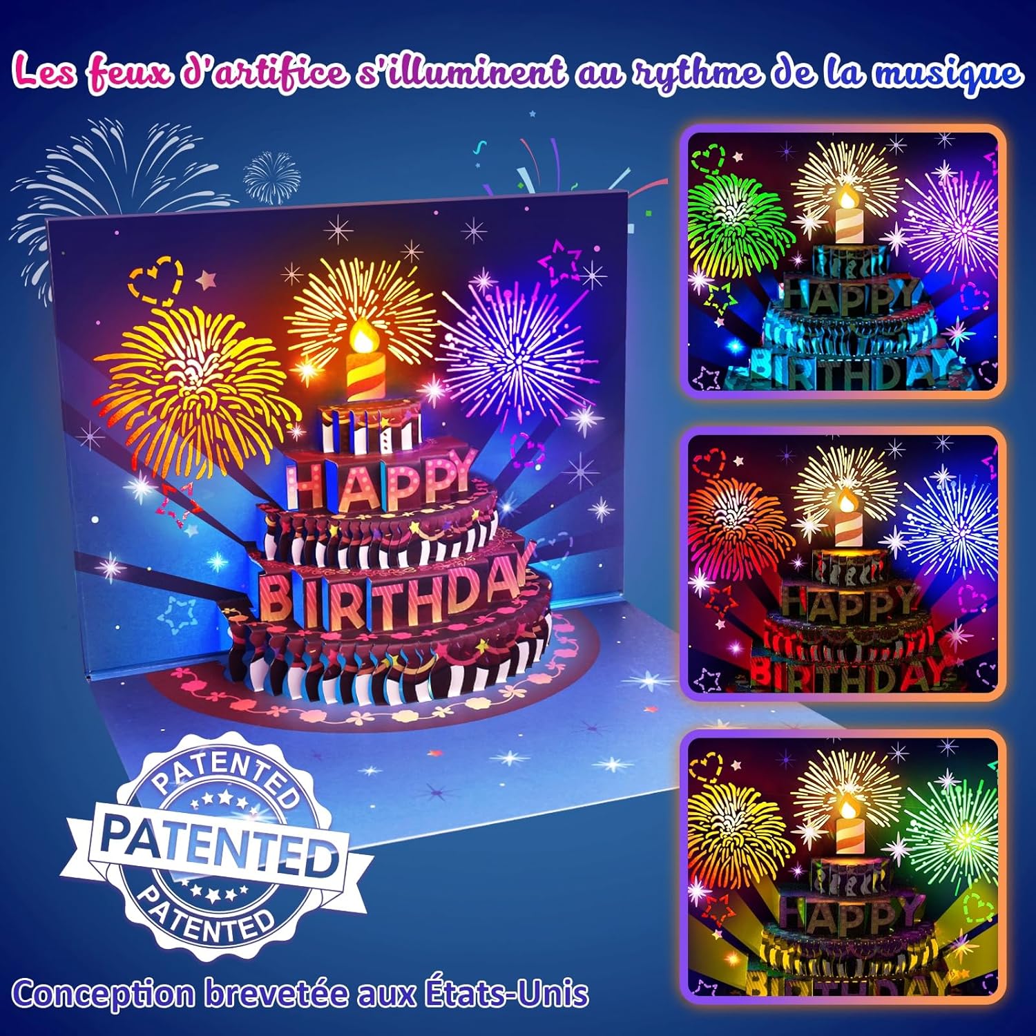 Biglietto d'auguri pop-up con luce e musica: quando il biglietto viene aperto, una torta pop-up esce dal centro mentre fuochi d'artificio colorati si accendono in sincronia con il suono dei fuochi d'artificio e la canzone di compleanno, creando un'esperienza visiva straordinaria. Festeggiamenti di buon compleanno: il biglietto d'auguri FITMITE è stato progettato per essere la perfetta combinazione di tecnologia audio e luci, aggiungendo un tocco di lusso e magia ai tuoi auguri di compleanno. Non accontentarti di un normale biglietto d'auguri! Biglietto premium con busta: i biglietti d'auguri sono realizzati in carta spessa ed ecologica e presentano colori vivaci. Ogni biglietto misura 22 x 17,5 cm e viene fornito con una busta bianca per affrancare e consegnare facilmente. Siamo certi che le nostre carte siano state rigorosamente testate per garantire prestazioni affidabili e qualità duratura. Ampio spazio per la personalizzazione: il nostro biglietto offre molto spazio per scrivere il tuo messaggio personale, rendendolo un modo davvero speciale per esprimere i tuoi sentimenti ai tuoi cari. La scelta migliore per un regalo di compleanno: regala ai tuoi cari un momento di felicità con un messaggio di compleanno speciale e una canzone di compleanno che li farà sicuramente sorridere.