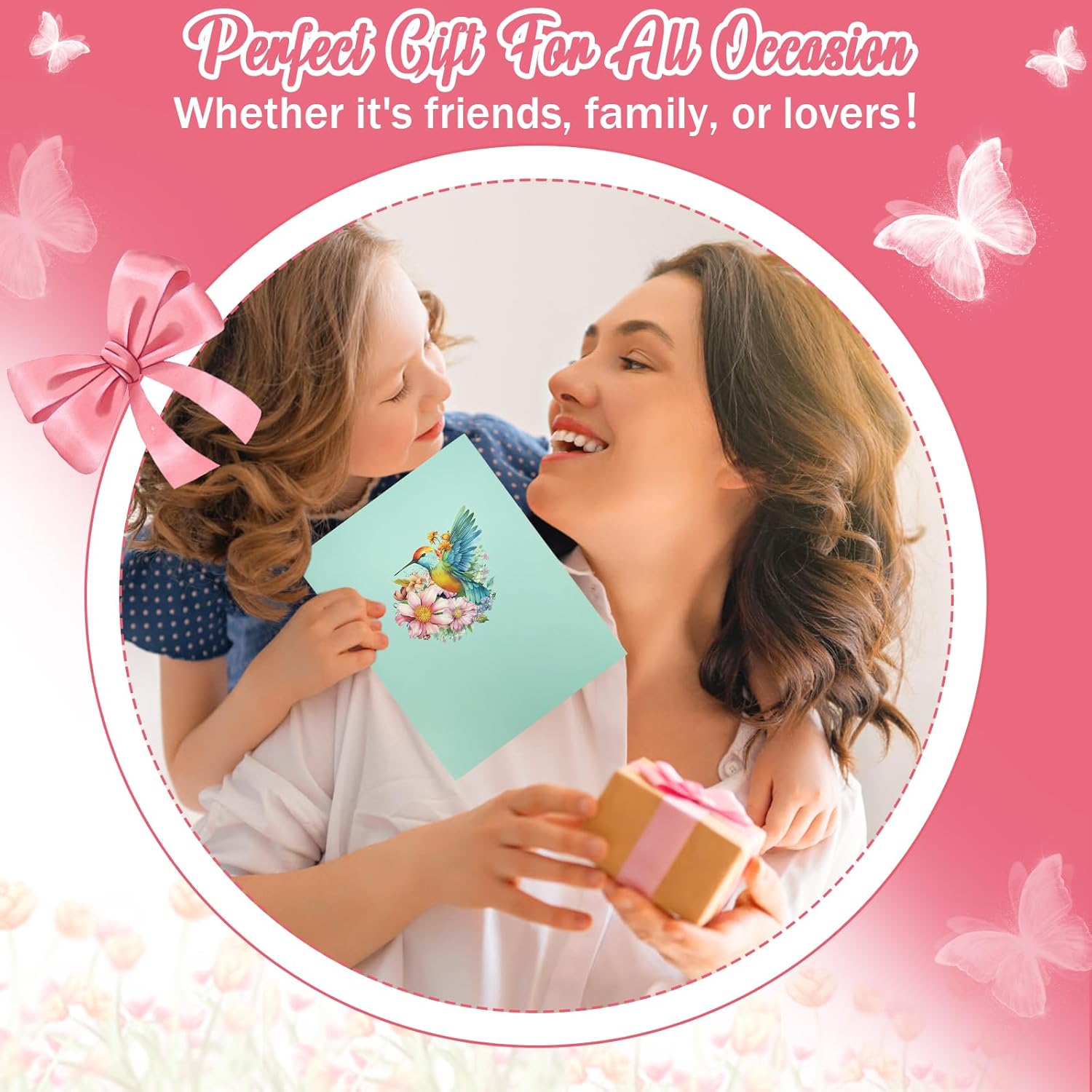 🐦[Design stereo 3D da sogno] Questo biglietto d'auguri per donna utilizza una raffinata tecnologia di arte della carta 3D. Un colibrì realistico sbatte le ali e vola sopra i fiori che sbocciano, creando una scena tridimensionale che sembra resuscitata dalla natura. Ogni petalo e ala è progettato con cura, con dettagli precisi e strati trasparenti, per diventare immediatamente il momento clou del regalo. 🎁[Un regalo a sorpresa pieno di rituale] Non è solo un biglietto di auguri, è anche un regalo avvolto in visione ed emozione. Apri leggermente la carta e il colibrì e i fiori appariranno tridimensionali sulla carta. La destinataria sarà immediatamente toccata da questo design unico, portando gioia e sorpresa inaspettate nel suo giorno speciale. ✍️[Spazio messaggio esclusivo] Il nostro biglietto anniversario viene fornito con un biglietto vuoto, che ti riserva spazio per esprimere i tuoi sentimenti esclusivi. Che si tratti di gratitudine, incoraggiamento o amore, puoi scrivere parole e ricordi propri, rendendo questo regalo unico e significativo. 💖[Falle un regalo speciale] Questo biglietto pop-up è perfetto per tua madre, moglie, fidanzata, figlia, sorella o migliore amica. È il modo migliore per esprimere il tuo amore, le tue benedizioni o la tua gratitudine. Che si tratti di un biglietto di compleanno, di anniversario, di ringraziamento, di festa della mamma, di matrimonio, di pensione o di guarigione presto, questo biglietto è l'ideale. 💎[Produzione di alta qualità] Il nostro biglietto d'auguri pop-up è realizzato in carta spessa di alta qualità con colori intensi e non sbiadisce facilmente. La sua struttura tridimensionale è stabile e non si danneggia facilmente quando smontata. Può essere conservato a lungo, diventando un raffinato decoro artistico per la casa. Sia che tu lo regali o lo riceva, la sua consistenza densa trasmetterà la tua sincerità.