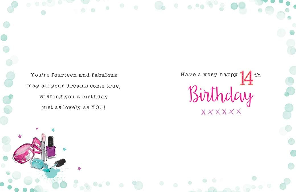 Biglietto d'auguri e busta di Piccadilly Greetings Progettato e prodotto nel Regno Unito per sostenere l'occupazione britannica Didascalia: 14 anni Descrizione: Trucco Dimensioni approssimative: 8" x 6"