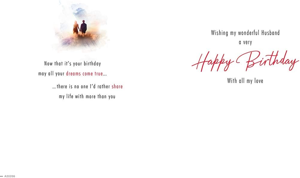 Biglietto d'auguri e busta di alta qualità di Piccadilly Greetings Progettato e prodotto nel Regno Unito per supportare i posti di lavoro britannici Didascalia: Marito Descrizione: Sunset WL Marito Coppia Dimensioni approssimative: 9 "x 6"