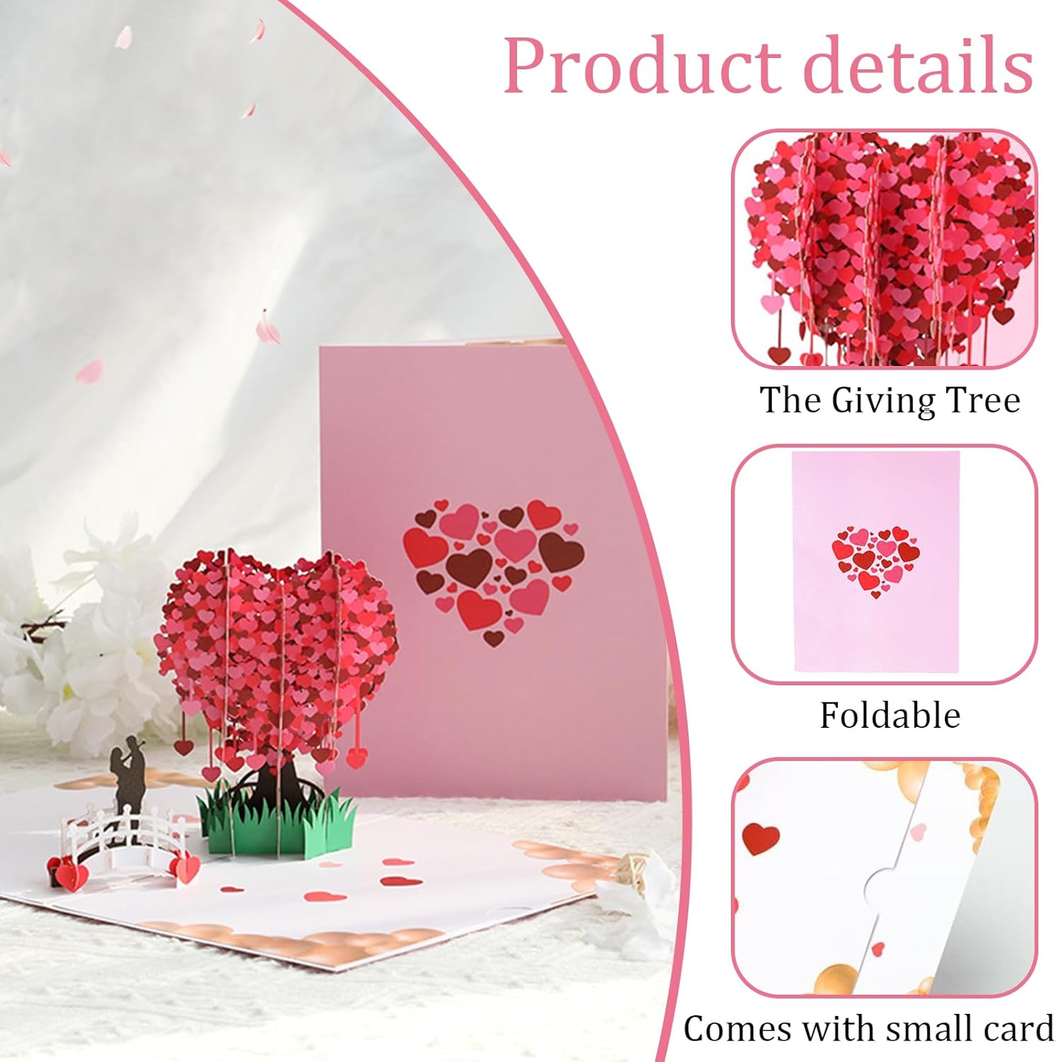Design 3D raffinato: questo biglietto di auguri di matrimonio adotta un raffinato design 3D stereoscopico, con un albero dell'amore in fiore come tema centrale. Una volta aperto, sembra un caldo e romantico rotolo 3D, aggiungendo un tocco di rituale alla tua espressione emotiva. L'intera partecipazione di nozze presenta una ricca impressione a strati grazie ad un'intelligente struttura artistica della carta. Alta qualità: questo biglietto di auguri di matrimonio è realizzato in cartoncino di alta qualità, con una trama spessa e flessibile, una superficie delicata e liscia e un tocco caldo e confortevole. Ha anche una buona durata, colori brillanti e duraturi e non è facile da sbiadire o deformare. Questa partecipazione di nozze porta benedizioni sincere ed è anche una preziosa testimonianza emotiva. Regalo a sorpresa: le partecipazioni di nozze di congratulazioni sono il regalo ideale per esprimere desideri e pensieri. Gli inviti di nozze non sono solo un biglietto, ma anche un prezioso pegno di amore e calore. Offrendo questo speciale biglietto d'auguri di matrimonio agli sposi, trasmetti loro anche emozioni sincere, un amore realizzato. Set di biglietti d'auguri: il retro del biglietto d'auguri di matrimonio ha un ampio spazio vuoto che consente alla persona che offre il regalo di descrivere i suoi migliori auguri agli sposi. biglietto di auguri di matrimonio il piccolo biglietto attaccato offre una piattaforma più intima e formale ed è inclusa una busta abbinata per garantire che gli auguri raggiungano la loro destinazione. Molteplici usi: che si tratti di un invito a nozze, di un biglietto di San Valentino o di un biglietto di auguri per un anniversario, questo biglietto pop-up trasmette i tuoi pensieri in un modo unico, aggiungendo un tocco di cerimonia e sorpresa ad ogni momento speciale. la cartolina di matrimonio è anche un prezioso supporto per trasmettere emozioni e desideri sinceri