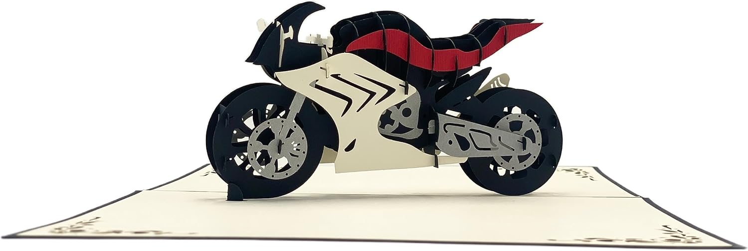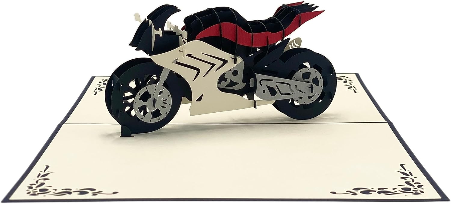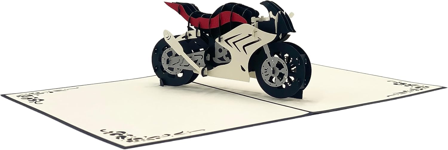 Biglietto d'auguri per la moto, per la prossima visita o per la patente. Sorprendi con un buono o come un regalo in contanti unico. Con inserto coordinato per messaggi personali. Realizzato con pregiata carta italiana proveniente da foreste sostenibili. Il biglietto pop-up per moto si apre facilmente e fa sorridere il destinatario. Idea regalo per motociclisti Qualità premium: tagliato al laser e assemblato a mano per formare un raffinato biglietto pieghevole 3D. In quanto azienda a conduzione familiare, ci concentriamo su condizioni di lavoro eque e favorevoli alla famiglia. Scopri la diversità dei nostri esclusivi biglietti d'auguri 3D nel nostro negozio Amazon. Disegni eccezionali per tutte le occasioni. Trova la tua carta perfetta