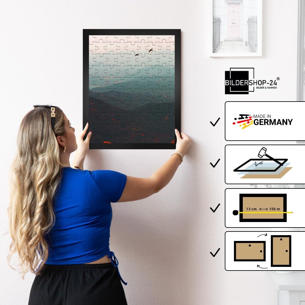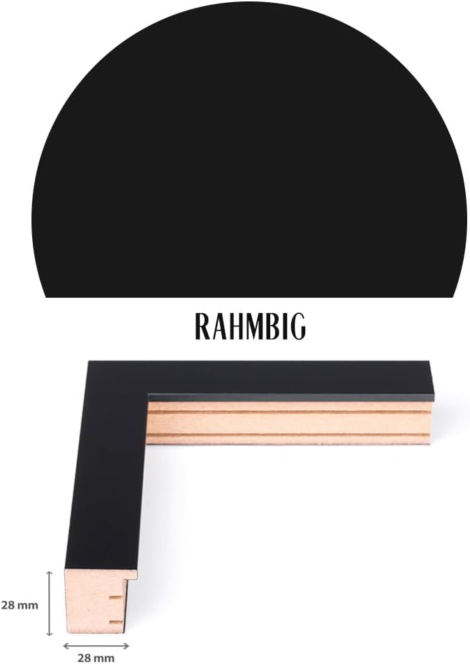 Profilo del telaio largo 28 mm e profondo 28 mm Incl. Pannello posteriore in MDF spesso 2,5 mm e disco in acrilico da 1 mm (normale lucido) Parete posteriore con ganci per formato verticale e orizzontale Dimensioni della cornice: dimensioni interne = dimensione dell'immagine, circa 6 mm saranno nascosti dalla vostra immagine Made in Germany