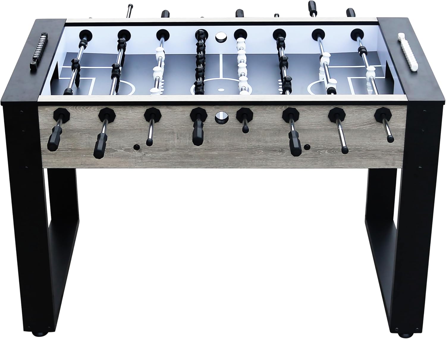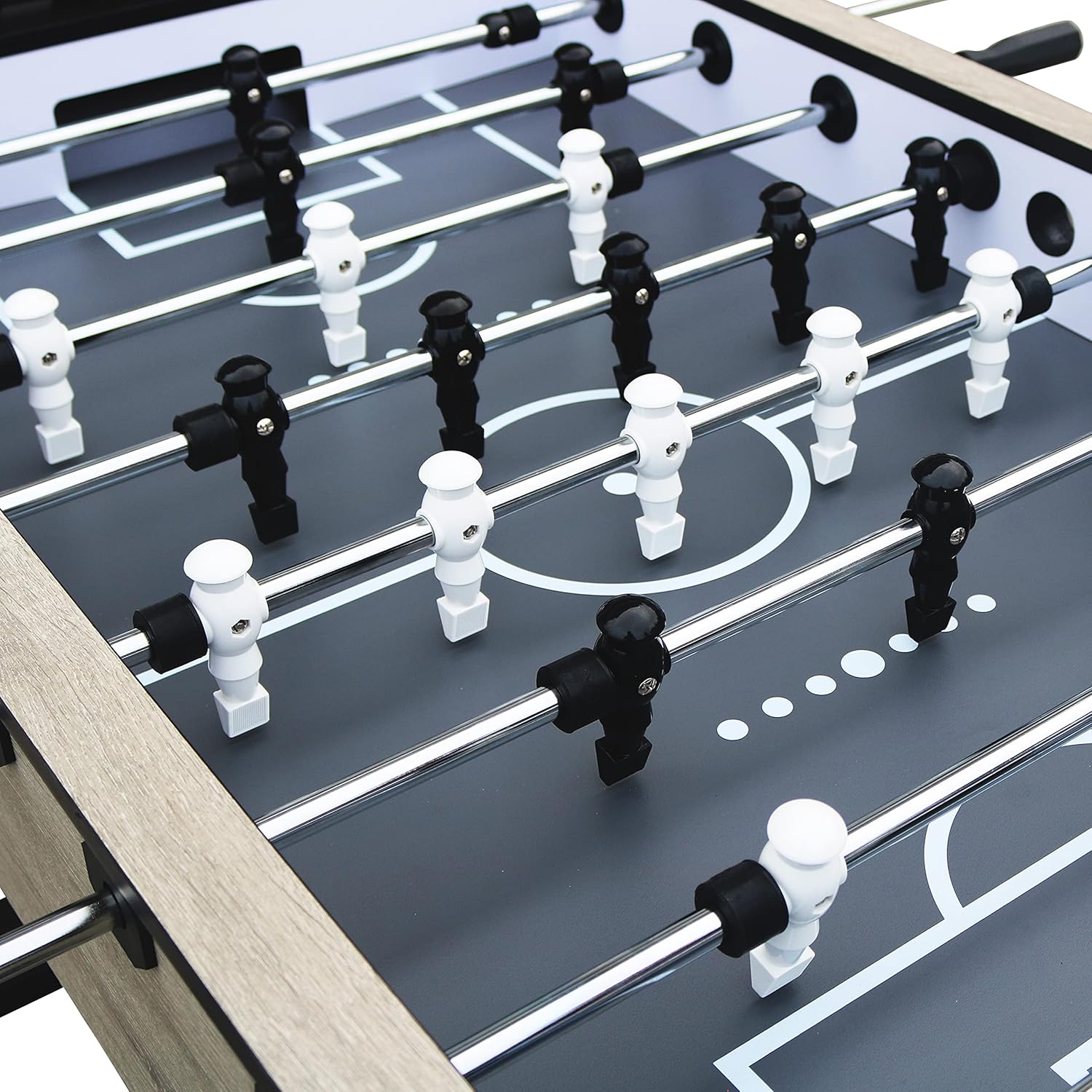 DIVERTIMENTO PER BAMBINI E ADULTI: Il biliardino Panna Pro Oak non solo colpisce per il suo design moderno, ma offre anche divertimento per giocare con la famiglia, gli amici o i colleghi! L'aspetto del legno di quercia e le gambe nere conferiscono al calcio balilla un aspetto naturale e allo stesso tempo industriale. Il calciobalilla è dotato di gambe regolabili in altezza per poter giocare su qualsiasi superficie. ALTA QUALITÀ: Un mobile effetto rovere con lati spessi 38 mm è montato sul telaio in metallo e ha uno strato superiore in HPL. Alle massicce aste da gioco (Ø15,8 mm) sono fissati 11 giocatori neri e 11 bianchi. Le sbarre da biliardino sono facili da usare grazie alle maniglie in PVC e ai cuscinetti in nylon. I tamponi in gel di silice tengono i giocatori lontani dalle pareti in modo che non si danneggino anche alle alte velocità. ACCESSORI INCLUSI: La nostra scatola da biliardino Worldcup Premium Pro viene fornita con 4 palline di precisione (35,5 mm), lubrificante e 2 segnapunti. Così ogni giocatore sa in ogni momento se ha bisogno di migliorare il proprio gioco! I fori di rimessa sulla linea centrale garantiscono un buon inizio di gioco! Il portiere è a 360? agile. DIMENSIONI TABELLA DA CALCIO (L x P x A): 140 x 77 x 88 cm. DIMENSIONI CAMPO DI GIOCO: 116,6 x 68 cm. PESO: 55 kg. COUGAR: porta l'emozione di una partita di calcio balilla, air hockey o biliardo nelle tue quattro mura con Cougar! Con i tavoli da gioco di Cougar ore di divertimento sono garantite per grandi e piccini. I nostri prodotti sono realizzati con materiali di alta qualità e sono adatti a bambini (e adulti) dai 5 anni in su.
