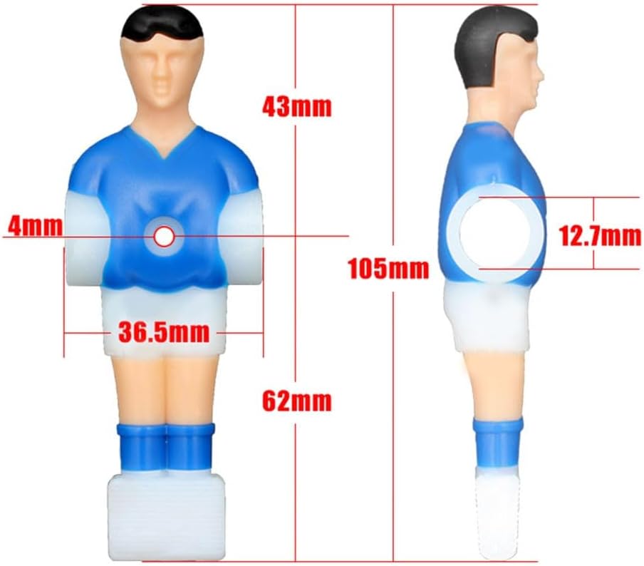 Materiale di qualità: realizzato in materiale funzionale e di lunga durata. Facile cambio del lettore: non sono necessari attrezzi per cambiare i giocatori sulle macchine, consentendo un uso comodo e senza problemi. Migliora il tuo gioco: un ottimo accessorio per le partite di calcio balilla, fornendo un'esperienza di gioco migliorata. Design colorato: disponibile in vivaci colori rosso e blu, aggiungendo un tocco di vivacità alla configurazione del gioco. Set completo: ogni set include 2 bambole rosse e 2 bambole blu, fornendo tutti gli accessori necessari per giocare.