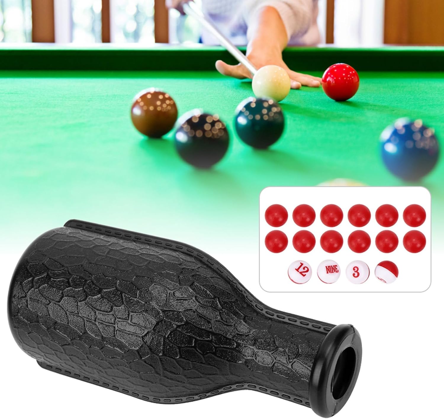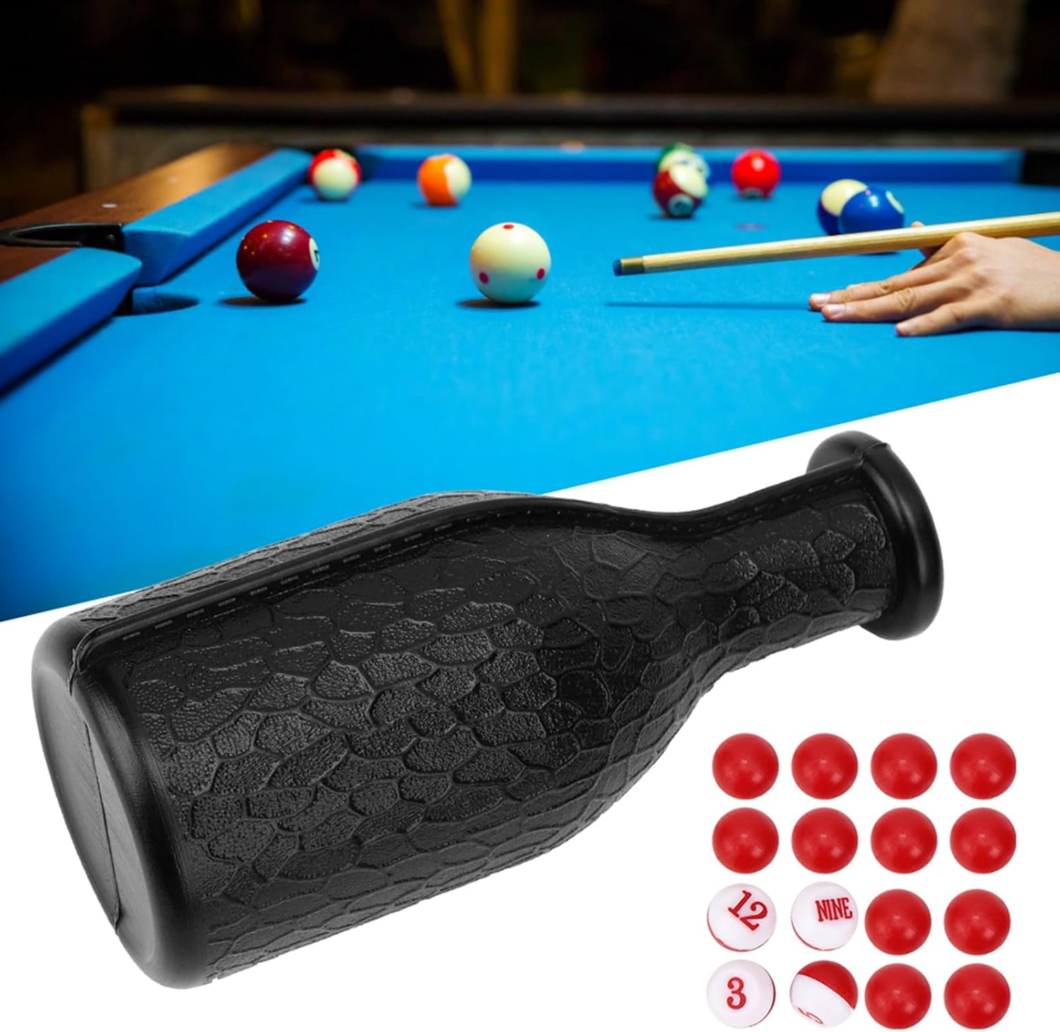 Kit di bottiglia da dadi da biliardo: aggiungi un nuovo livello di eccitazione ai tuoi giochi di biliardo con i dadi digitali inclusi e 16 palline di conteggio numerate, rendendo ogni round imprevedibile e divertente. Uso versatile: ideale per diversi giochi, puoi personalizzare le regole di gioco per adattarsi alle tue preferenze, consentendo infinite varietà e sfide nelle sessioni di piscina o biliardo. Facile da usare: la bottiglia shaker è progettata per mescolare accuratamente le palline di conteggio, garantendo una selezione equa e casuale ogni volta che tiri, mantenendo il gioco dinamico e coinvolgente. Accessori da biliardo: che tu stia giocando con la famiglia a casa o ti impegni in una competizione amichevole in un bar, questo tavolo da biliardo Accessori da biliardo l'esperienza di biliardo per giocatori di tutte le età. Costruzione della durata: realizzate in gomma eccellente, le palline di conteggio sono durabilità e progettate per un uso ripetuto, fornendo prestazioni di lunga durata senza usura.