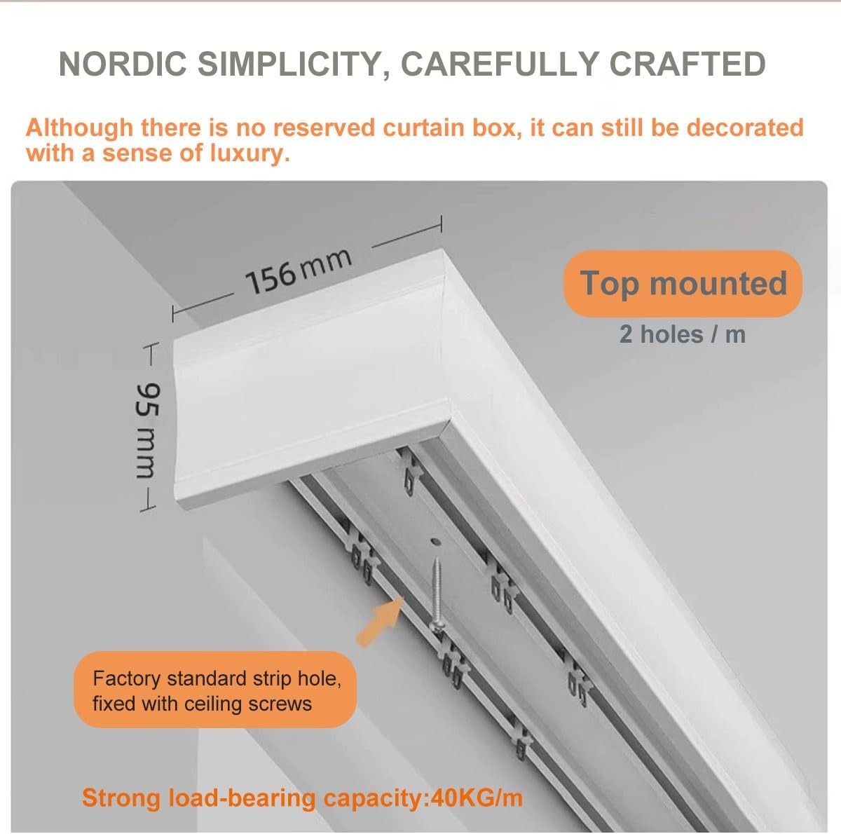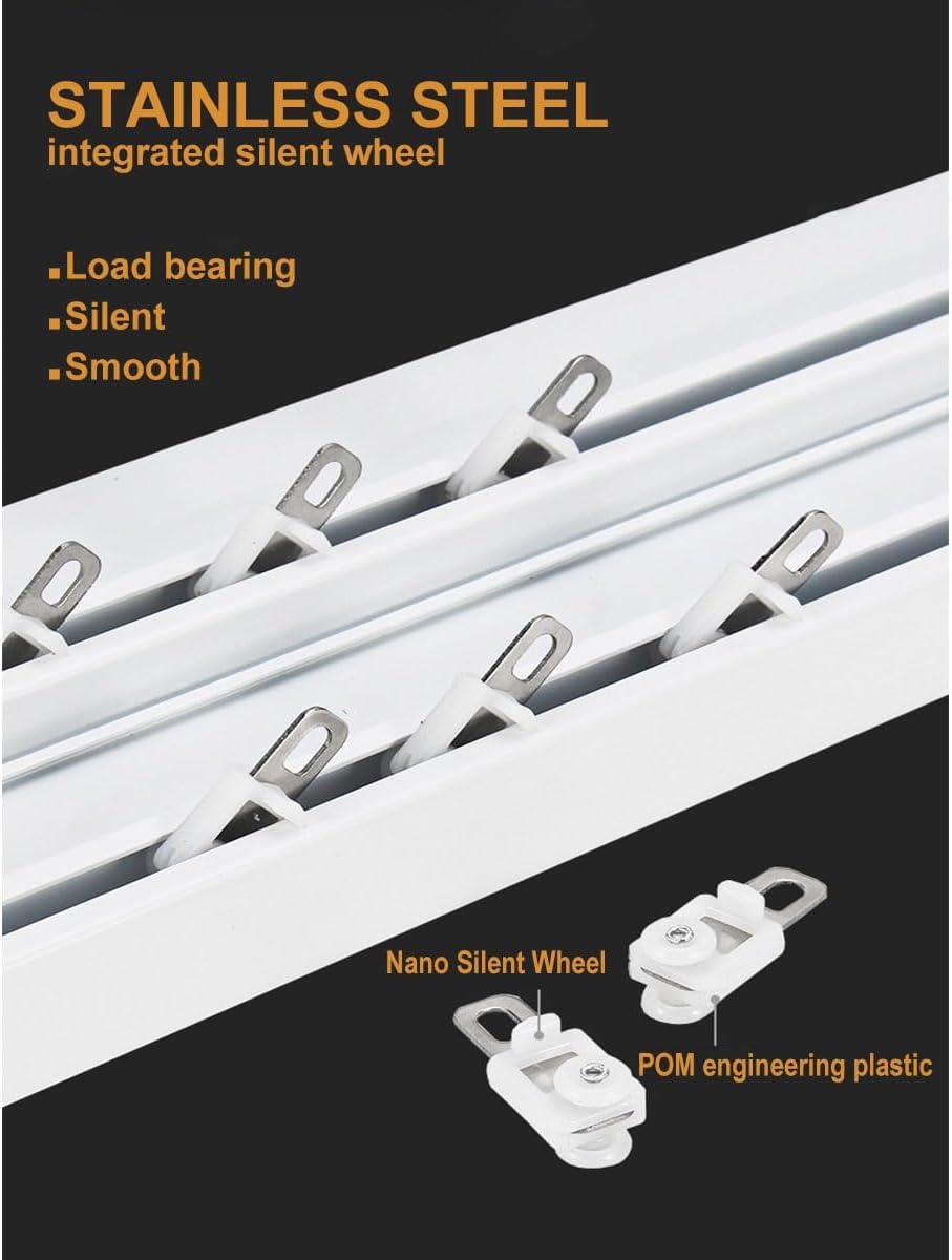 1. Lunghezza Del Binario Della Tagliata a 150 cm per Le Restrizioni Del Trasporto Aereo, Connettori Inclusi per un Assemblaggio Senza Soluzidi Continuità 2. Design Curvo Minimalista con Doppi Binari, Deflettori e Pulegge per un Aspetto Elegante e Una Migliore Ombreggiatura 3. Costruziin Alluminio Resistente per Una Forte Capacità Di Carico, Prevenzidella Ruggine e Resistenza Al Calore 4. Le Pulegge Silenziose Garantiscono un Funzionamento Fluido e Silenzioso per un Riposo Indisturbato 5. Opzioni Di Installaziversatili per Vari Spazi, tra Cui Hotel, Scuole, Soggiorni, Camere da Letto e Altro Ancora