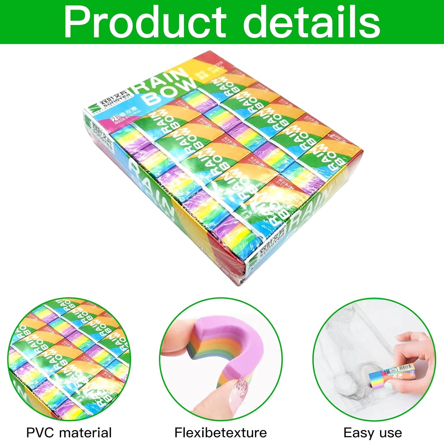【Materiale di alta qualità e sicuro】La nostra gomma è realizzata in materiale PVC di alta qualità, non tossico e innocuo, i bambini possono usarlo con sicurezza. 【Strumento utile】Può pulire la normale scrittura a matita ed è piacevolmente morbida, non invecchia, è facile da pulire, non si attacca alla carta e garantisce un elevato comfort di utilizzo. 【Facile Da Pulire】Basta premere e muovere la gomma per pulire rapidamente i segni di scrittura senza danneggiare il libro o la carta. 【Pacchetto incluso】La dimensione della gomma è 2,3 x 5,5x1 cm/0,9x2,2x0,4 pollici. Contiene 30 pezzi di gomme da cancellare arcobaleno, quantità multiple possono soddisfare le tue esigenze per molto tempo. 【Ampiamente utilizzato】Gomma morbida e resistente 2B, molto adatta per l'uso universale in schizzi, dipinti, arti visive, scuole.