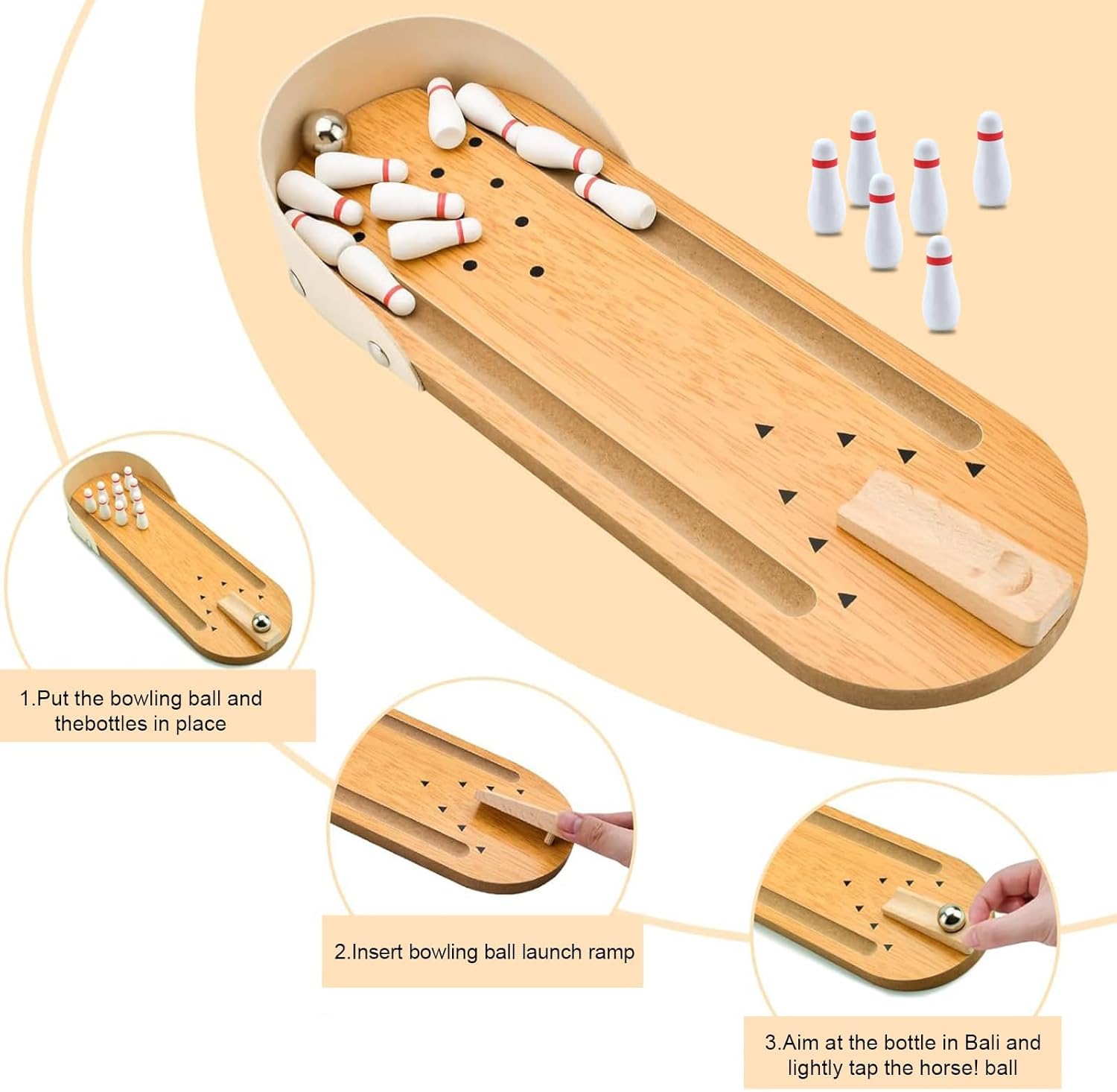 Materiale Di Qualità: La base del mini bowling è realizzata in legno naturale, la superficie è finemente lucidata, liscia e priva di bave, ecologica e atossica, e i bambini possono entrarvi in contatto senza paura. tisch mini bowling spiele Il design originale del colore del legno è semplice e naturale, con una texture calda, che tiene conto della durata e dell'estetica, adatta per un uso a lungo termine in una varietà di scenari come casa e ufficio. Gioco Divertente: Questo gioco mini bowling abbatte la bottiglia espellendo con la punta delle dita la palla d'acciaio, che riproduce fedelmente il divertimento del bowling reale, alleviando facilmente lo stress e l'ansia. Innovativo design della pista regolabile, supporto per il lancio multi-angolo, sfida di precisione e strategia, giochi per giocatore singolo o multi-player possono ispirare gioia illimitata, non ci si stanca mai di giocare a giochi competitivi da tavolo. Giochi Educativi: Birilli bambini gioco dal posizionamento della bottiglia di palline all'espulsione della mira, l'intero esercizio della coordinazione occhio-mano dei bambini, può promuovere la concentrazione, l'allenamento delle mani dei bambini, la pista rimovibile e l'autoregolazione del gioco, stimolano il pensiero logico e la creatività, è sia divertente che pratico giocattoli educativi. Compatto E Portatile: Bowling per bambini dimensioni (lunghezza tavolo palla 29cm) leggero e portatile, facile da adattare alla scrivania, tavolino e altri piccoli spazi. I componenti sono facili da smontare, immagazzinare, casa, ufficio, festa in qualsiasi momento per giocare, un secondo per creare un'atmosfera felice, per soddisfare le esigenze di intrattenimento diversificate di bambini e adulti. Giocattoli Da Partire: Il mini gioco da tavolo del bowling può essere portato a scuola per condividere il divertimento con i tuoi amici, o anche usato come gioco di partito ovunque in casa o in ufficio per aiutarti a liberarti della noia facilmente. set da bowling eccellente gioco da tavolo per 1 o più giocatori. (Adatto a tutte le età dai 3 anni in su)