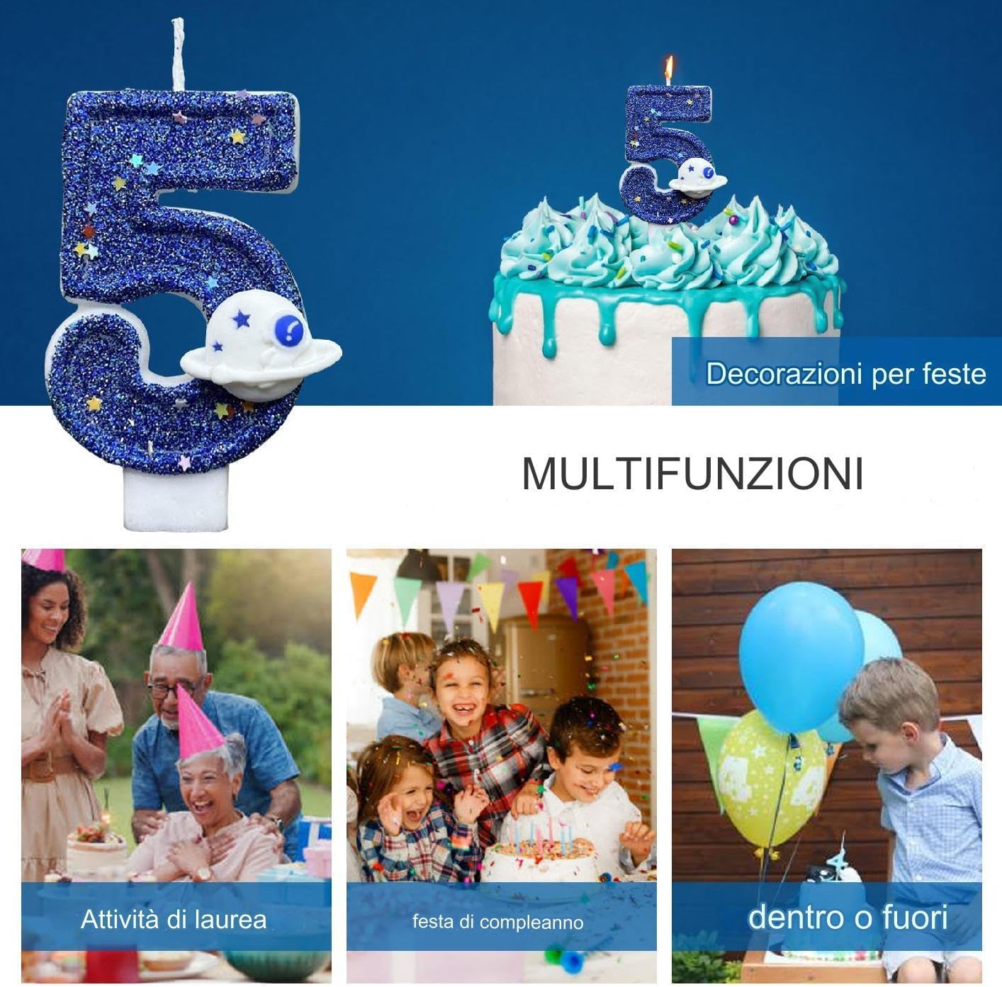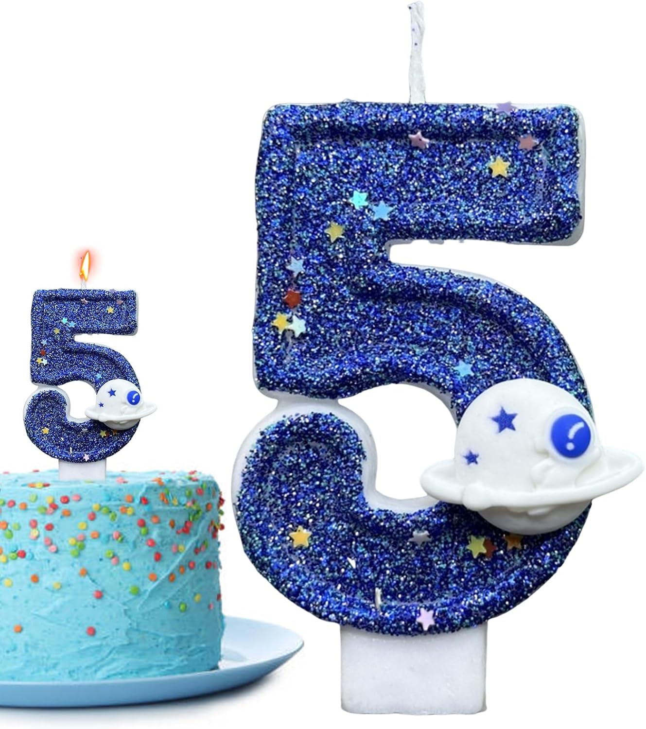 Space-themed design for celebration: Features cosmic colors, rocket and planet details, and bright finishes that bring an intergalactic feel to any birthday cake, perfect for kids, teens, or themed party events Bright burning wax with stable base: Crafted from quality wax for clean and steady flames during use, each number candle includes a firm stick base that stays secure in cake without tipping, melting, or sinking quickly Adds charm to every age event: These number-shaped candles are designed for all ages from toddler to adults and can be combined to match any birthday year with visual and celebratory personality Great for cake, cupcakes, or desserts: Whether decorating a layered cake, tray of cupcakes, or single dessert centerpiece, these candles instantly enhance any treat with bright flame and themed visuals for photo moments Reusable if carefully removed: Can be preserved for display or reused in future events when extinguished gently and stored properly, making them a decorative element beyond single-day use in parties or home setups