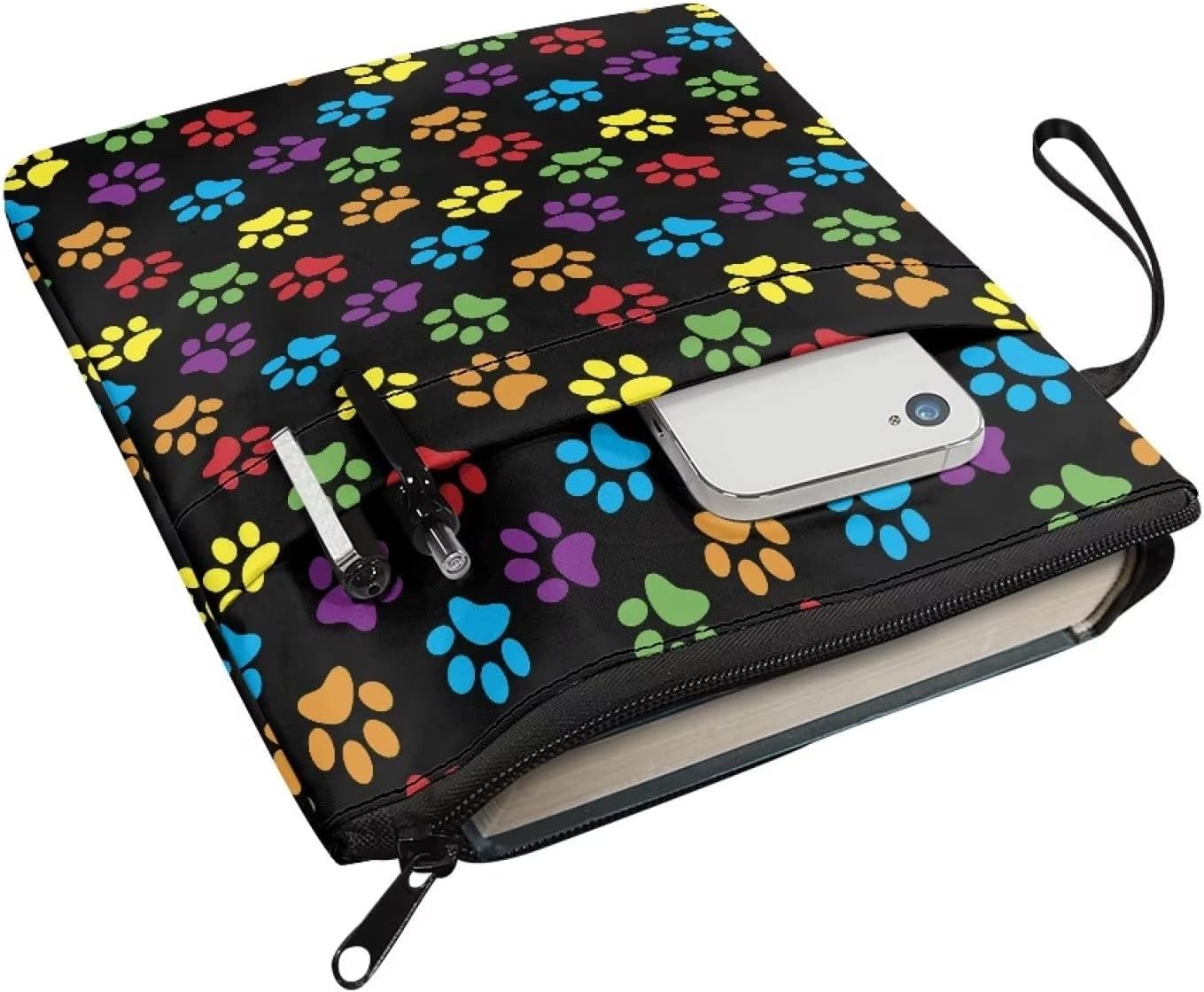 Dimensioni adatte: questa custodia per libro misura circa 29 x 22 cm e si adatta alla maggior parte dei libri autopubblicati, tascabili standard, cartellini di massa, copertina rigida normale, copertina rigida ordinaria e così via. Si prega di misurare le dimensioni degli articoli prima dell'acquisto. Adatto per bambini di età superiore ai 3 anni. Materiale di alta qualità: questa custodia per gli amanti dei libri è realizzata in poliestere, ben realizzata e resistente. La copertina del libro è facilmente lavabile a mano e in lavatrice per un uso ripetuto. Proteggi il libro dai danni mentre lo porta in giro in una borsa o nello zaino. Design innovativo: la custodia per libri ha anche una custodia frontale, perfetta per riporre quaderni, piccoli diari, articoli di cancelleria, occhiali, segnalibri, penne e persino alcuni piccoli accessori decorativi. L'adorabile design colorato di questa graziosa custodia per libri attirerà sicuramente l'attenzione e manterrà un libro organizzato e facile da trovare in una borsa o uno scaffale affollato. Chiusura con cerniera: la copertina del libro è dotata di una cerniera per proteggere i tuoi libri dalla caduta. La custodia del libro ha anche una corda portatile sul lato, che è molto comoda da trasportare quando esci. Regalo ideale: puoi mettere i tuoi amati libri in questa protezione per libri, per proteggere la copertina del tuo libro dallo sporco, ideale per mantenere i tuoi libri al sicuro durante i viaggi. Adatto per il loro amore per libri, amici, compagni di classe, famiglia, ecc. Regalo ideale per gli amanti dei libri per anniversari, Halloween, compleanni, vacanze, Natale, San Valentino, laurea.