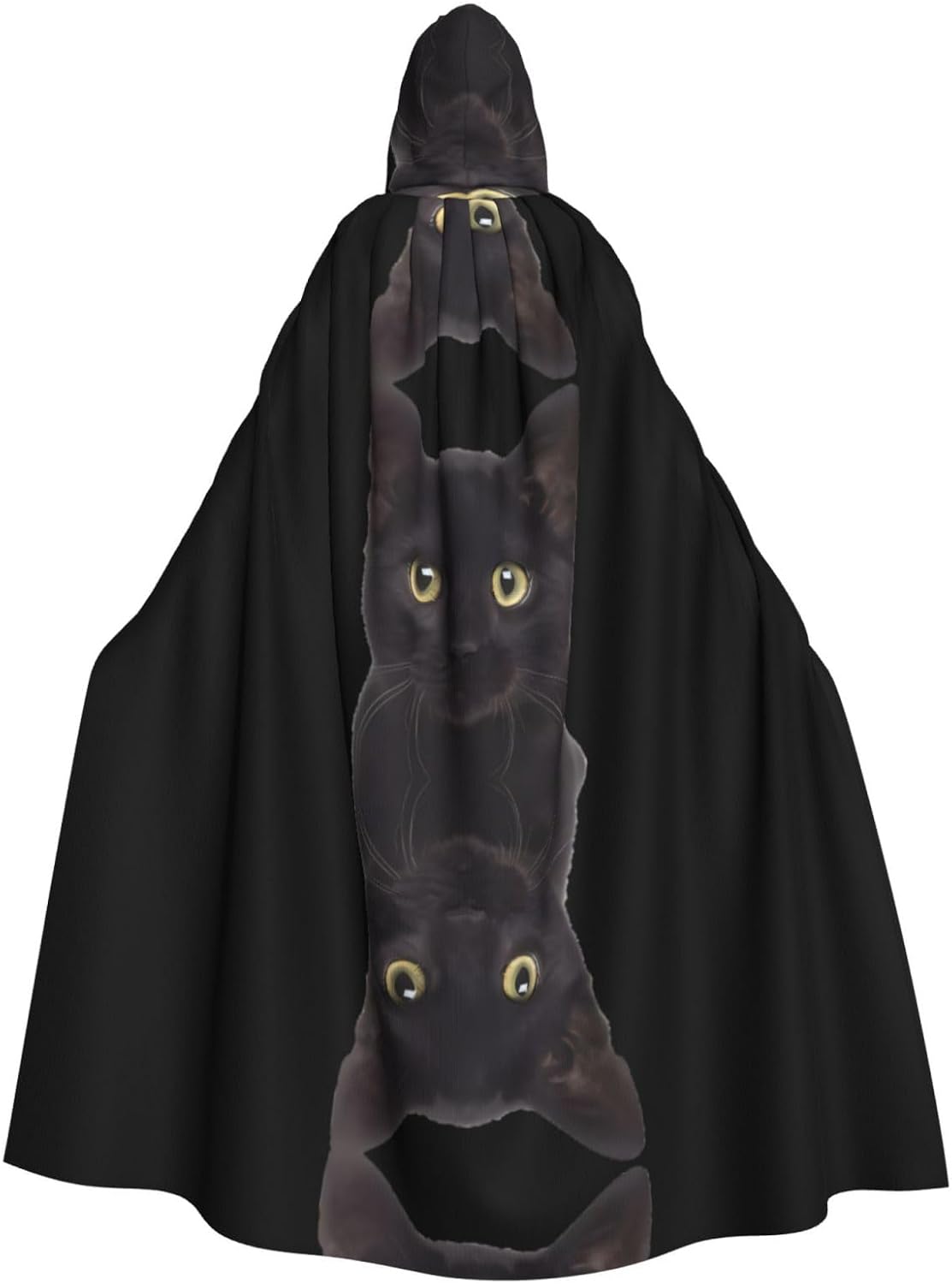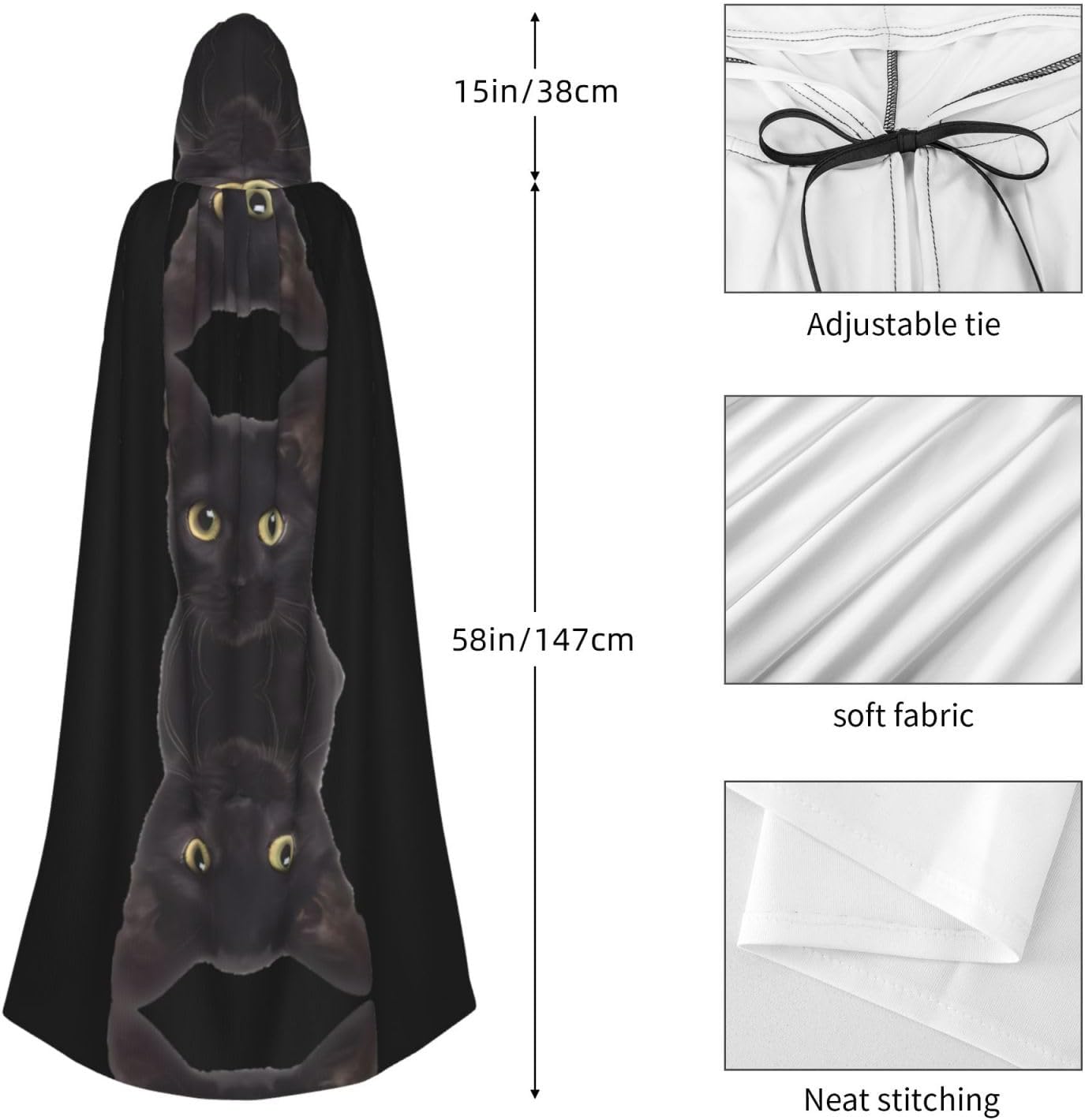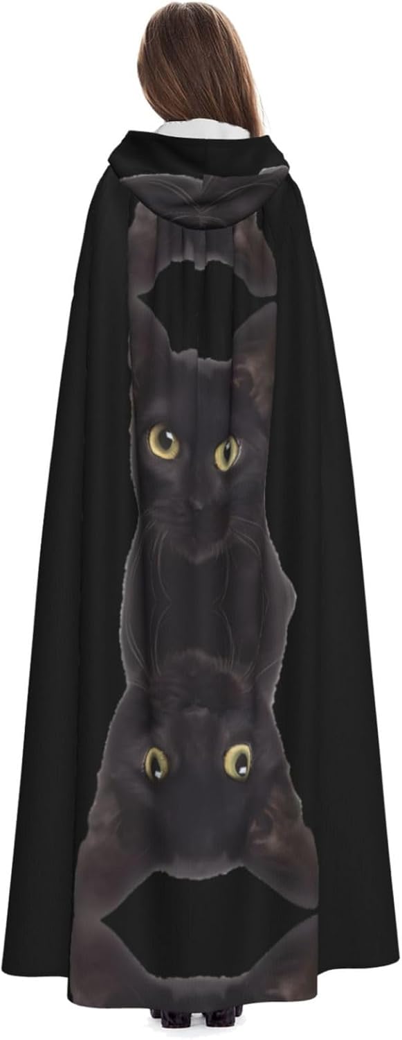 Black Cute Cat__: mantello unisex con cappuccio con stampa HD, mantello di Halloween, mantello con cappuccio, costume cosplay unisex vestaglia