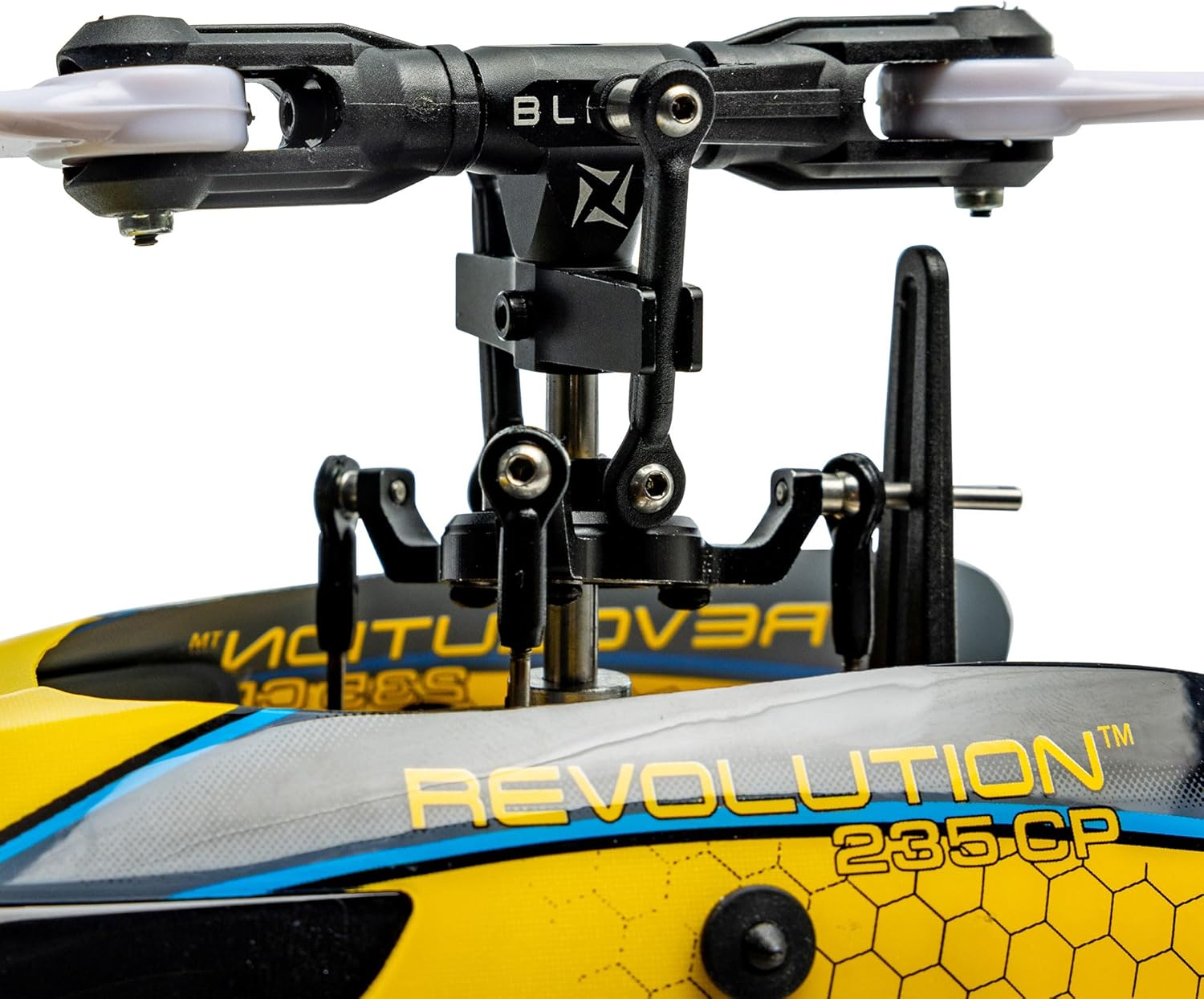 Impara a volare gli elicotteri Collective Pitch (CP) e migliora le tue abilità con la Revolution 235 CP. Questo elicottero sviluppato di Blade 230 S è perfetto per principianti e piloti esperti, più facile da volare, più robusto e potente. I modelli Bind-N-Fly (BNF) sono dotati di sistema di propulsione, servo e un ricevitore spettro 2,4 GHz. Collegare il ricevitore a un trasmettitore compatibile (telecomando), completare il montaggio finale e andare via (trasmettitore, batteria e caricatore venduti separatamente) Se questo è il tuo primo modello di elicottero, l'esclusiva tecnologia SAFE (Sensor Assisted Flight Envelope) di Horizon Hobby protegge da sovracorrenti e arresti anomali. Offre anche diverse modalità di volo che ti permettono di avere maggiore controllo e flessibilità con l'aumento delle capacità. La meccanica principale del rotore CP consente una sensazione di volo equilibrata e combina fluttuazione, sport e acrobazia, il che non è possibile con la meccanica FP. In caso di perdita di controllo in modalità acrobatica, il pulsante antipanico aiuta a riportare automaticamente l'elicottero al volo orizzontale. (1) Blade Revolution 235 CP con: (1) motore principale brushless, (3) servo digitale spettro con ingranaggi in metallo, (1) spettro AR6250MHXD Flybarless Flight Controller e (1) ricevitore con AS3X e SAFE, (1) spettro Dual 15A principale e 8A posteriore Brushless Smart Lite ESC, (1) supporto per lame, (1) Manuale di istruzioni