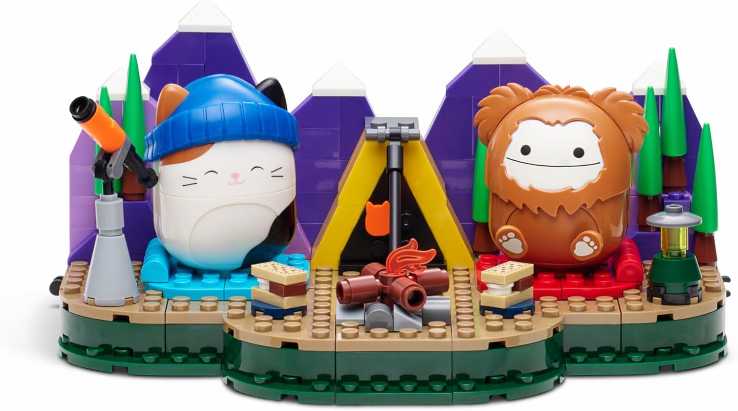 CAMPING ADVENTURE PLAYSET: Radunati intorno al falò con lo Squishmallows Camping Adventure Building Set, un display da campeggio costruibile con i preferiti di Squishmallows Cam e Benny. SQUISH & ACCESSORI: Cam the Calico Cat e Benny the Bigfoot presentano pance schiacciabili alimentate da SquishBrik di Original Squishmallows! Gli accessori classici per falò costruibili includono un telescopio, una tenda, s'mores e altro ancora. Misure: questo set da 246 pezzi BLDR Squishmallows Camping Adventure misura 20,3 x 12,7 x 9,4 cm, mentre le figure costruibili Cam e Benny Squishmallows misurano 5,1 cm di lunghezza quando completamente assemblate. Compatibilità: i mattoni BLDR sono compatibili con tutte le principali marche di costruzioni. Versatilità: collega e mostra le tue figure Squishmallows costruibili in altri set di display BLDR Squishmallows, o collega i set insieme per formare un display personalizzato.