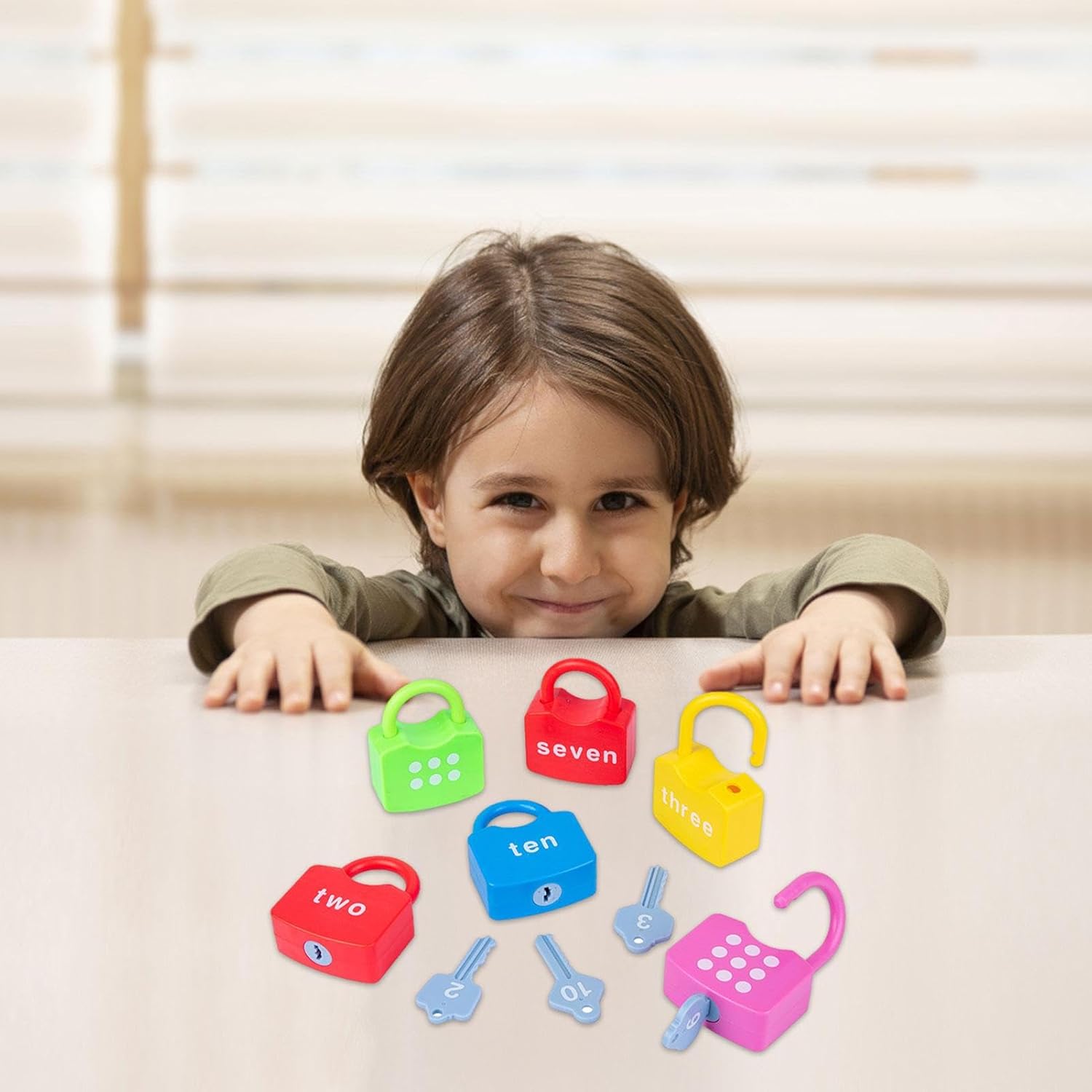 【Fantastico regalo per un bambino】 I nostri giocattoli chiave di sblocco con varie caratteristiche multi-play, i più piccoli possono costruirlo e imparare forme e colori, è il miglior Natale e il regalo di compleanno per i bambini. 【Portare facilmente】 I nostri puzzle abbinano il motivo a colori viene fornito con una scatola di archiviazione facile da conservare e trasportare. Potresti mettere tutti gli nella scatola dopo aver giocato. Facile da trasportare e anche come giocattoli da viaggio. 【Smooth & Burr-Free】 I nostri giocattoli abbondanti sono realizzati con addominali ecologici di buona qualità con vernice vibrante ed ecologica. Le superfici sono lisce e di bara, con rotondi, che non danneggono le mani del bambino. Giocattoli per bambini. 【Sviluppo delle abilità pratiche】 Questo blocco e set di tasti ogni blocco hanno una chiave di corrispondenza e il blocco e la chiave hanno numeri e punti corrispondenti. Questo gioco di numero di numeri può sviluppare le proprie abilità pratiche, migliorare la resilienza e la perseveranza e migliorare la percezione del colore. 【Interazione genitore-figlio】 I nostri giocattoli chiave, quando i bambini e i genitori si concentrano sul gioco, diventa un eccellente gioco interattivo che promuove il tra loro.