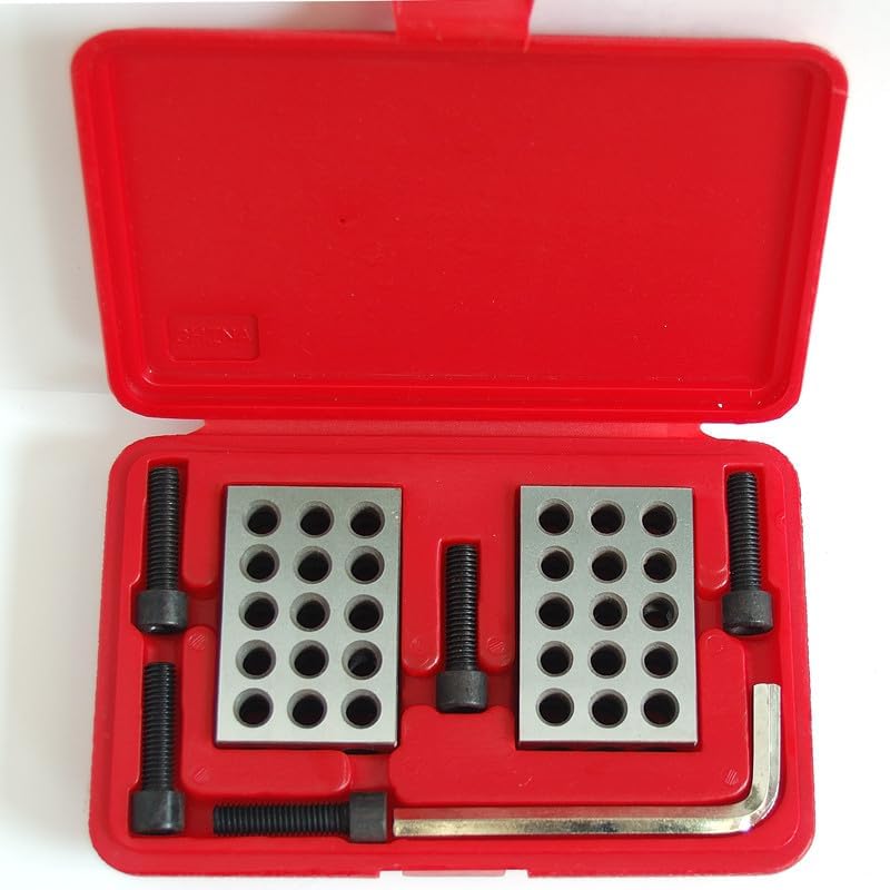Dimensioni: , 25-50-75mm. Materiale: realizzato in acciaio per utensili di alta qualità antistress contro la distorsione, rettificato di precisione e temprato. Applicazione: facile da usare nel bloccaggio di precisione di parti in lavori di foratura, fresatura, stampaggio, assemblaggio, ecc. Facile da riporre: il set viene fornito in una custodia di plastica per una facile conservazione, protezione e trasporto. Confezione: blocchi da 2 pezzi.