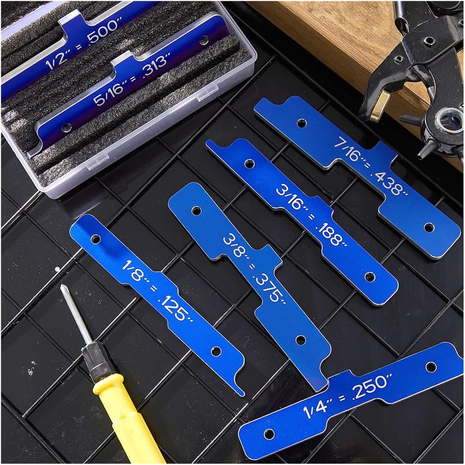 7Pcs Precision Router Table Set Up Bar Lavorazione del legno Configurazione in alluminio Blocco Altezza Calibro Set Accessori per seghe da tavolo Strumento per calibro obliquo I blocchi di installazione sono forniti in una custodia organizzativa con barre ad alta precisione da 1/8", 3/16", 1/4", 5/16", 3/8", 7/16", 1/2", facili da usare leggere le etichette incise sul set di blocchetti di riscontro. Alluminio morbido anodizzato progettato per evitare danni alle punte del router o alla lama della sega in caso di contatto durante l'installazione. Organizzato e ben protetto dalla custodia, assicurando che nessuno andrà mai perso durante il trasporto o l'utilizzo. La barra di installazione è lo strumento e l'attrezzatura indispensabili per l'edilizia, la lavorazione del legno e il fai-da-te domestico, anche la migliore scelta regalo per questi appassionati.