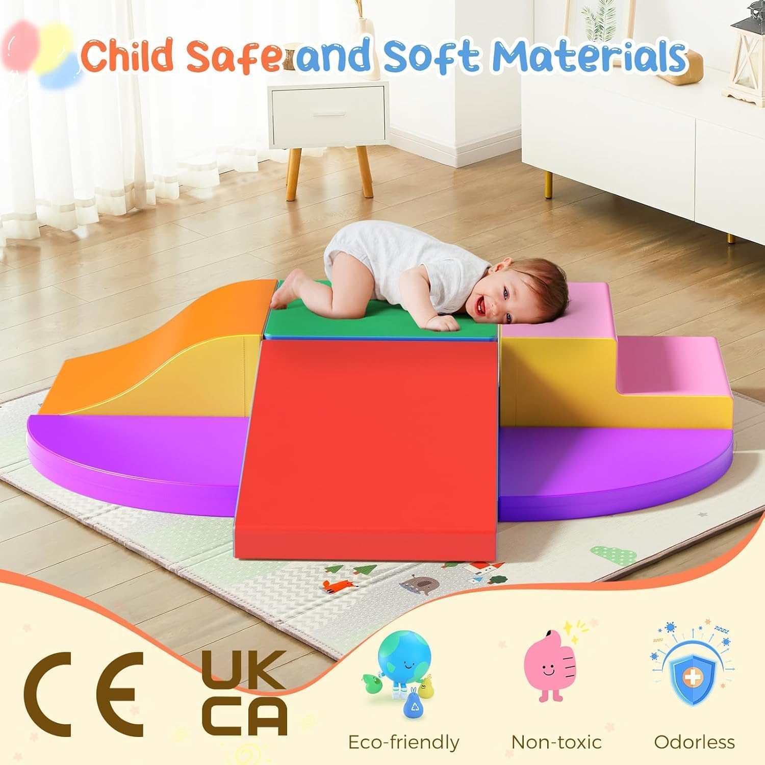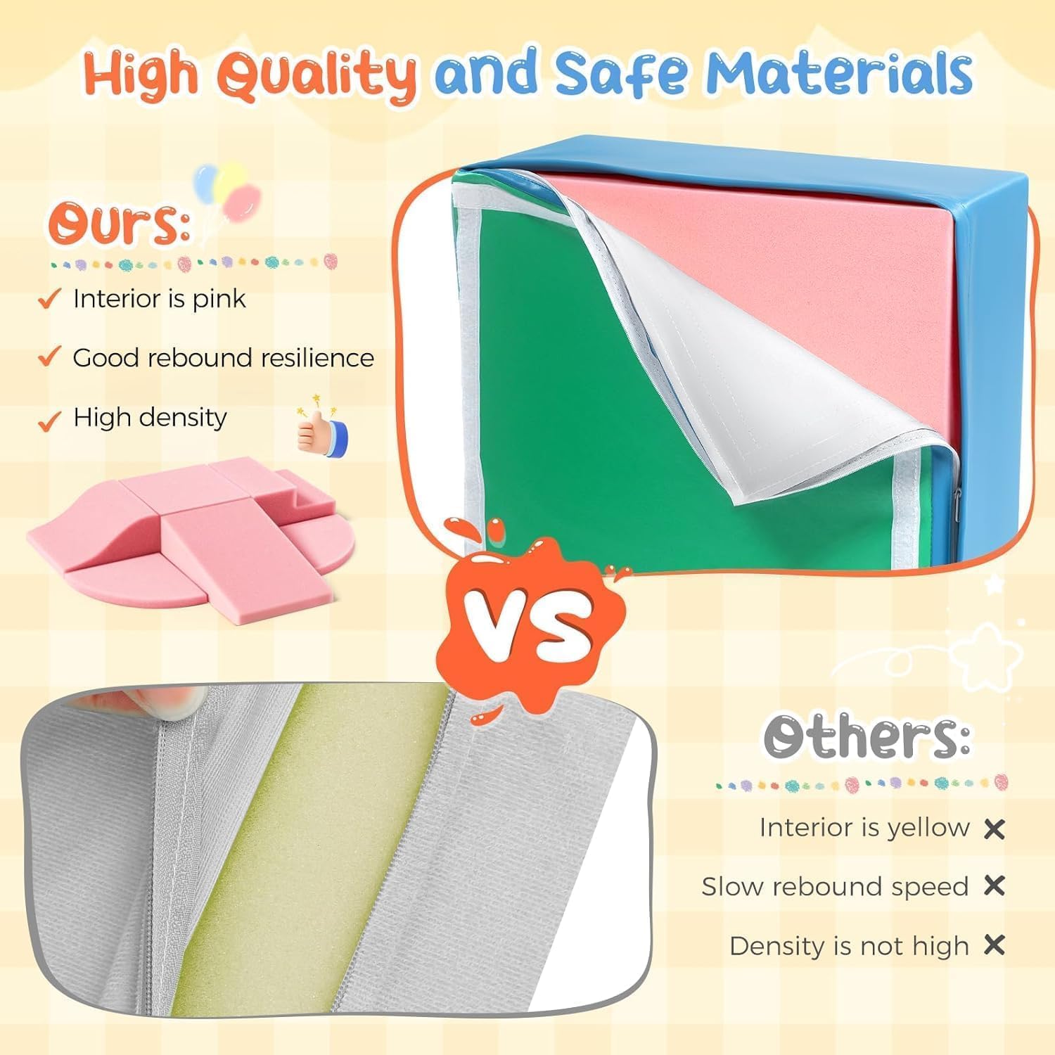 Durevole e di alta qualità: questo mattone da arrampicata in schiuma per bambini di 3 anni è realizzato in schiuma morbida di alta qualità e pelle PU, resistente e facile da pulire. I bambini possono giocare e rotolare in sicurezza sul giocattolo da arrampicata morbido e di supporto, in modo che i genitori possano sceglierlo con la coscienza pulita. Set da 6 pezzi: il mattone da arrampicata per bambini include 1 scala, 2 mattoncini grigi a mezzaluna, 1 blocco quadrato, 1 blocco curvo e 1 scivolo. I morbidi elementi di gioco stimolano l'immaginazione dei bambini e consentono di divertirsi con l'arrampicata e l'impilamento di 4 diverse forme. Giocattolo educativo educativo: i giocattoli da arrampicata angolari per bambini attirano l'attenzione con il loro aspetto colorato e favoriscono il riconoscimento dei colori. I bambini imparano forma, dimensioni e contesti spaziali impilando e organizzando i mattoncini e promuovendo così l'esperienza di apprendimento. Promuovere lo sviluppo motorio: i blocchi di schiuma sono facili da assemblare e possono essere trasformati in diverse forme, consentendo ai bambini di creare mondi fantasiosi e strutture architettoniche. Promuovi la creatività attraverso i giochi migliorando la coordinazione occhio-mano e lo sviluppo sociale. Regalo di compleanno ideale: il morbido tappetino da arrampicata per bambini da 6 pezzi è adatto per casa, sala giochi, cameretta dei bambini e altri scenari, garantendo un'esperienza di gioco sicura e divertente. Questo set di arrampicata da parete in schiuma è un ottimo regalo di compleanno per neonati, bambini e bambini in età prescolare.