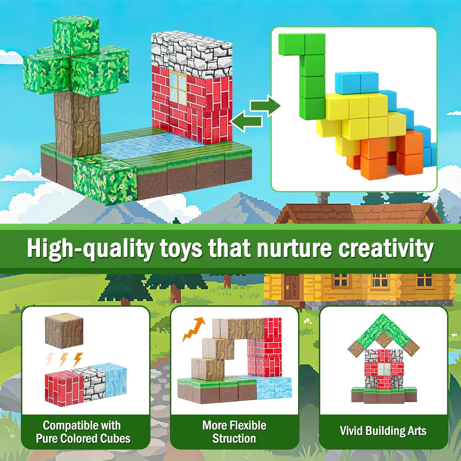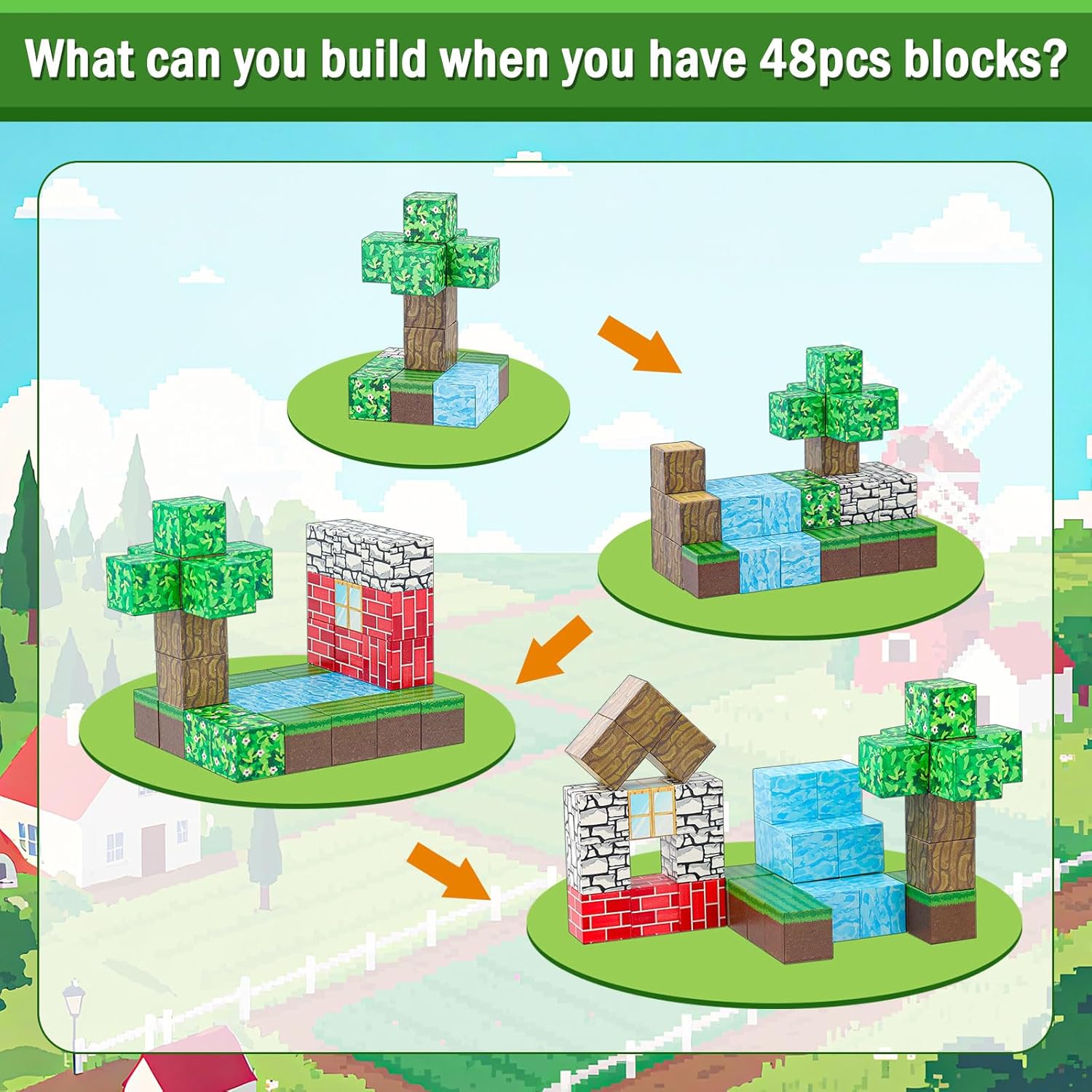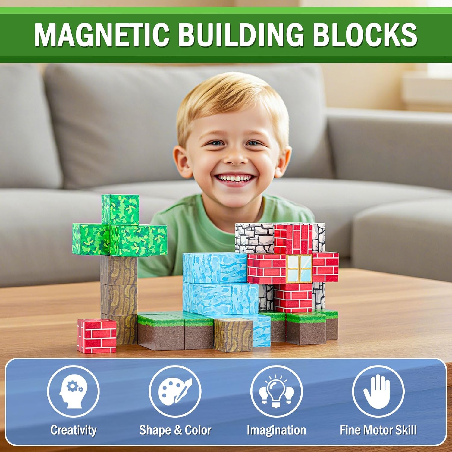 Set di costruzioni magnetiche: questo set di mattoncini magnetici contiene 48 blocchi magnetici colorati, tra cui foglie, ruscelli, fiori, mattoni, erba, ceppi e altro ancora. Le istruzioni creative incluse aiutano i bambini a costruire diverse strutture e a creare il proprio mondo della foresta da sogno! Giocattolo STEM-MONTESSORI: sviluppa efficacemente immaginazione spaziale, pensiero logico, forme geometriche, equilibrio strutturale e capacità di risoluzione dei problemi. Promuove l'educazione STEM e risveglia la curiosità dei bambini per le scienze, la tecnologia e la fisica. Sicuro e durevole: i blocchi magnetici sono realizzati con materiali ecologici di alta qualità con motivi chiari e colori vivaci. Sono sicuri e durevoli e hanno una forte struttura magnetica che garantisce stabilità. Durante la costruzione, fa un clic e i bordi arrotondati facilitano il gioco dei bambini. Divertimento per l'apprendimento: più di un semplice giocattolo: è uno strumento di apprendimento che consente ai bambini di imparare in modo creativo e giocoso. Scopri i segreti del magnetismo, sviluppa la coordinazione occhio-mano, le abilità motorie e la pazienza promuovendo allo stesso tempo lo sviluppo sensoriale e la concentrazione. Il regalo perfetto: questo set è il regalo ideale per ragazzi e ragazze dai 3 anni in su, perfetto per compleanni, feste dei bambini, Natale e altre festività. Offre infinite possibilità di creatività e immaginazione, consentendo ai bambini di dare libero sfogo alla loro immaginazione e giocare per ore.