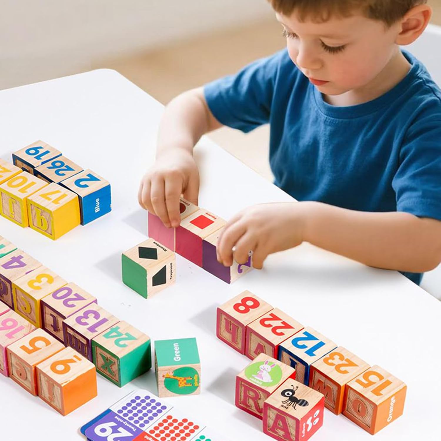 Costruzione robusta: questi blocchi di lettere in legno fungono da giocattolo durevole e sicuro per i bambini, progettato per un uso frequente. Forniscono opportunità di apprendimento continuo e divertimento mentre i bambini crescono e scoprono i fondamenti della lingua nelle situazioni quotidiane. La costruzione stabile promuove lo sviluppo cognitivo e supporta il divertimento duraturo attraverso prestazioni affidabili. Elementi costitutivi interattivi versatili: gli elementi costitutivi delle lettere consentono l'apprendimento guidato dall'esplorazione con combinazioni di forme di animali e numeri. Promuovono l'abbinamento, l'ordinamento e l'impilamento, stimolando il pensiero logico e aumentando la creatività durante il gioco per bambini piccoli e in età prescolare creando un ambiente di gioco flessibile per attività indoor e outdoor. Scelta regalo premurosa per i bambini: i mattoncini dell'alfabeto per i più piccoli fungono da strumento educativo che è anche un pratico giocattolo di apprendimento. Aiutano i bambini a sviluppare competenze essenziali e promuovono aree di gioco organizzate, rendendoli un'opzione regalo adatta per compleanni o occasioni celebrative che uniscono educazione e divertimento. Supporta le capacità motorie dei bambini: i blocchi di costruzione dell'alfabeto in legno utilizzano uno speciale design modulare plug-in per promuovere lo sviluppo della forza di presa delle dita e delle capacità di plug-in motorie fini. Ciò consente ai bambini di migliorare la loro destrezza in attività di costruzione fantasiose all'asilo nido o durante il gioco in famiglia, allenando così le capacità motorie in modo giocoso e stimolando la creatività. Giocattoli per lo sviluppo visivo: gli elementi costitutivi dell'alfabeto progettati per le interazioni "spingi e impara" incoraggiano i bambini a riconoscere i colori e i numeri, sostenendo il loro sviluppo intellettuale mentre esplorano il gioco educativo nelle attività prescolari o nei momenti di legame familiare, promuovendo naturalmente la percezione visiva.