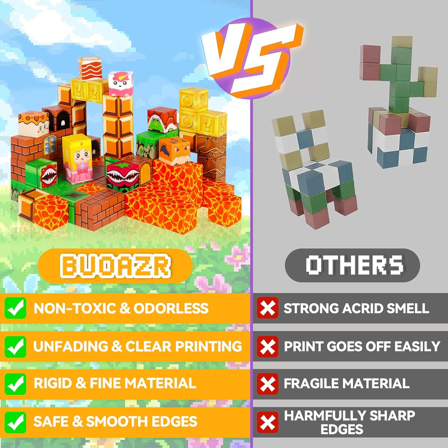【Set di blocchi magnetici classici】 Scopri 100 pezzi di cubi magnetici! Ideale per i bambini dai 3 ai 12 anni e più, questo gioco educativo stimola la creatività e la loro immaginazione con forme geometriche modelli 2D/3D. Dalle semplici costruzioni alle costruzioni difficili, scopri il piacere dei giochi di ruolo e dei giocattoli vestiti. 【Materiale sicuro e forte】 I blocchi magnetici sono realizzati con materiale ABS di alta qualità, durevole, sicuro, non tossico e innocuo e non sbiadisce, realizzati con bordi arrotondati e buone dimensioni, liscio e robusto. I potenti magneti consentono assemblaggi facili. La superficie beneficia della stampa UV avanzata, che impedisce lo scolorimento dei modelli. 【Giocattoli educativi sensoriali per bambini】 Questi blocchi magnetici aiutano i bambini a migliorare la loro percezione spaziale, la logica e le capacità motorie, le immagini ricche ispirano la creatività ed l'esplorazione sensoriale. Con queste blocchi magnetici per costruire, girare, distruggere e ricostruire, aiutano a migliorare la concentrazione e la pazienza, il coordinamento cooperativo. 【Portatile e versatile】 Light e facile da trasportare, consegnato con un sacchetto di stoccaggio, questo giocattolo di blocchi magnetici accompagna le avventure quotidiane. Imposta immaginazione e creatività ovunque tu vada con i nostri blocchi magnetici versatili. 【Regalo ideale】 I blocchi magnetici possono portare un legame più stretto tra te e tuo figlio. Ideale per regali di Natale, compleanni o Pasqua. Nel tuo tempo libero, accompagna i tuoi bambini a godersi i momenti caldi portati dai giocattoli magnetici, in modo che i bambini possano sentire il calore della famiglia.Rendilo l'opzione migliore per giocare a bambini per bambini nei fine settimana.