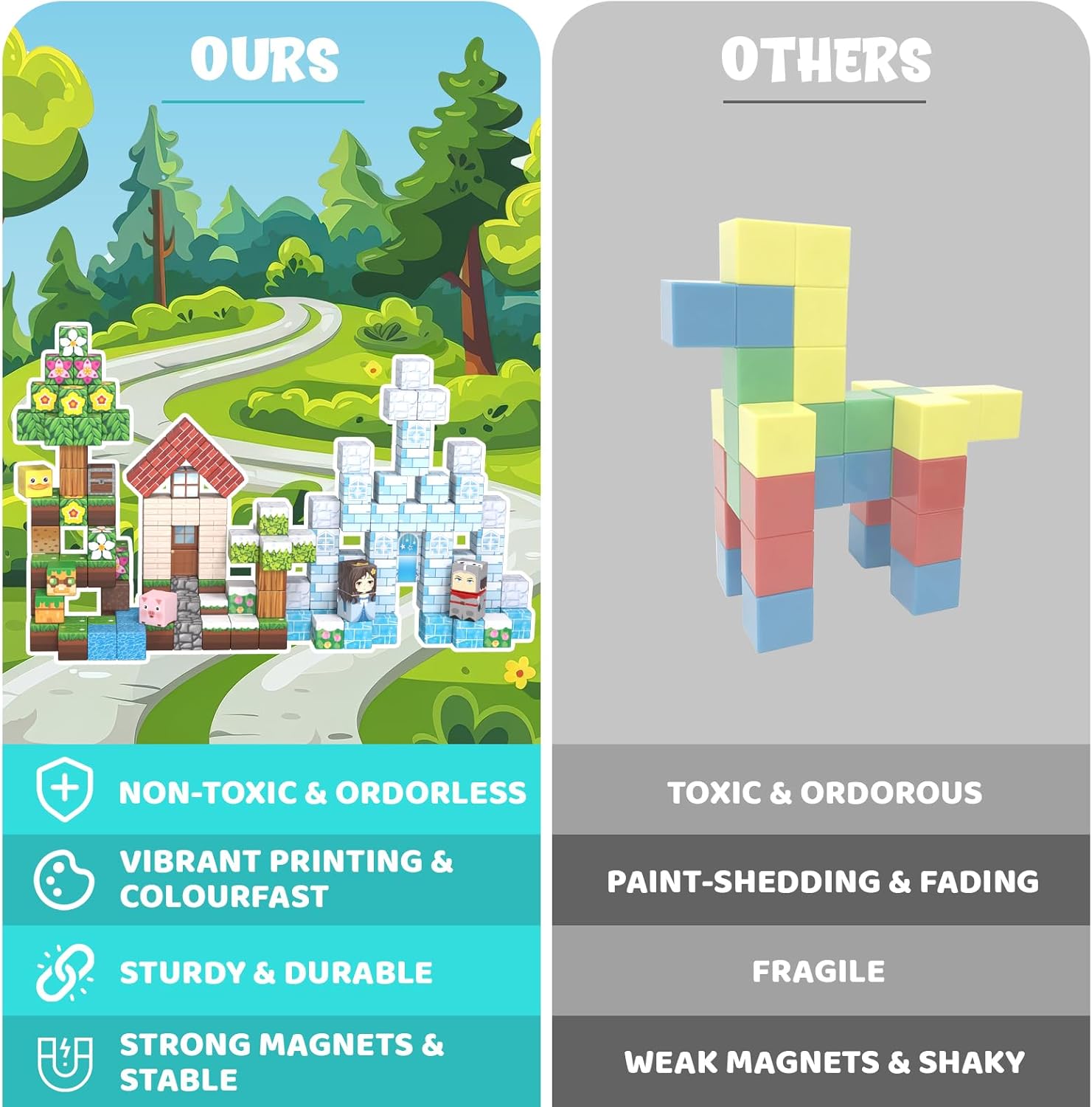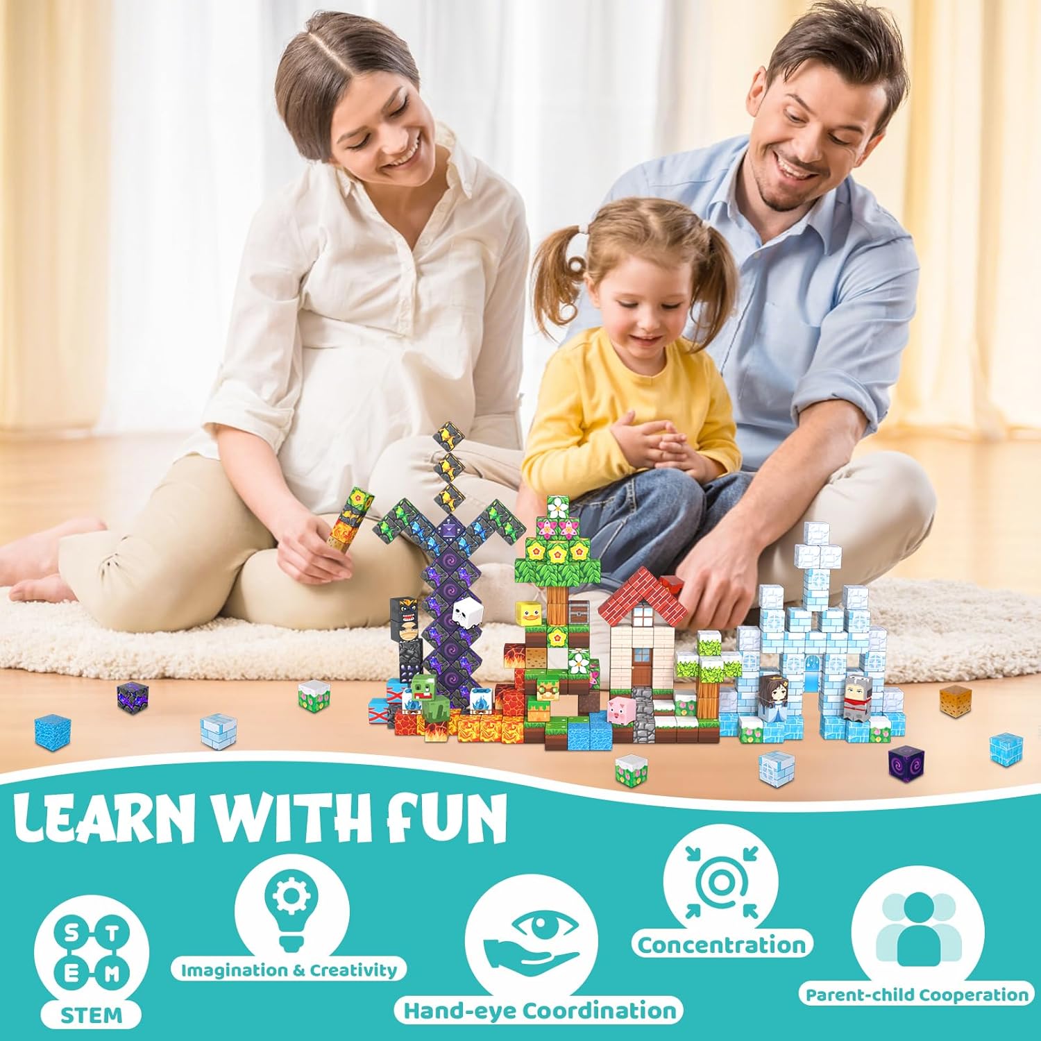 Set di mattoncini magnetici da 200 pezzi: mattoncini magnetici ACELIFE contiene 200 cubi magnetici colorati (3 temi: ghiaccio e neve, foresta, vulcano) e 9 personaggi. In questo modo i bambini possono dare libero sfogo alla loro immaginazione e creare mondi da sogno con infinita creatività Forte forza magnetica per costruzioni stabili: i blocchi di apprendimento STEM sono dotati di potenti magneti che garantiscono connessioni sicure. Le costruzioni rimangono stabili e non cadono facilmente – questo aumenta la fiducia dei bambini e garantisce più divertimento durante il gioco Materiale e design sicuri per i bambini: i nostri cubi magnetici sono realizzati con materiali atossici di alta qualità, testati professionalmente e certificati a prova di bambino. La dimensione di 2 cm si adatta alle mani piccole, quindi sono facili da impugnare e impilare e creare strutture impressionanti Giocattolo educativo STEM sensoriale: i bambini imparano giocando: sviluppano concentrazione, coordinazione occhio-mano, creatività e pensiero logico. Puoi costruire da solo o lavorare con genitori/amici per migliorare il lavoro di squadra e le abilità sociali Il regalo perfetto per i bambini: emozionante giocattolo magnetico per ragazzi/ragazze dai 3 ai 12 anni (anche giocattoli sensoriali per bambini dai 3 ai 4 anni e bambini dai 5 ai 7 anni) che offre ore di divertimento e gioco educativo. Un regalo significativo per Natale, compleanni e altre occasioni speciali