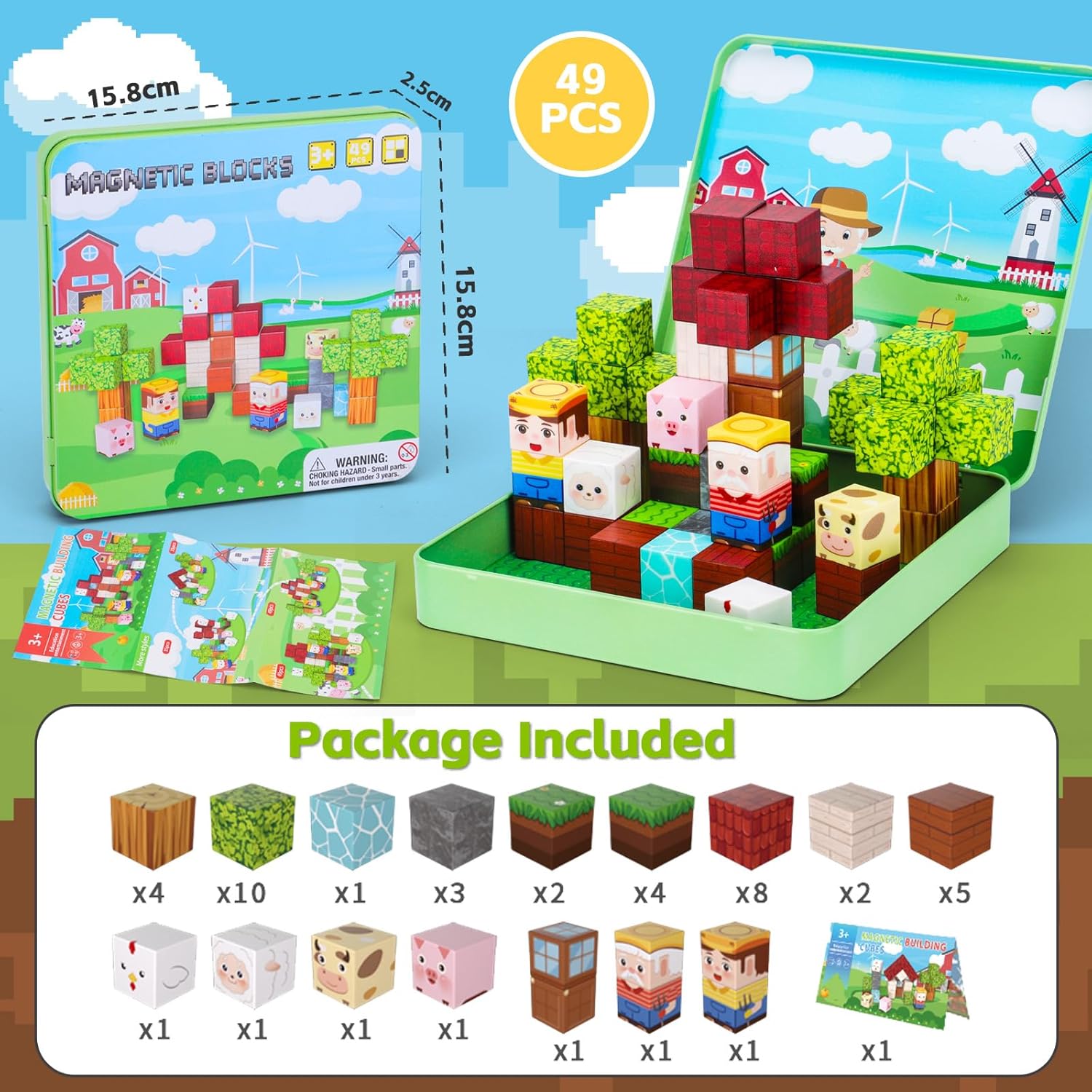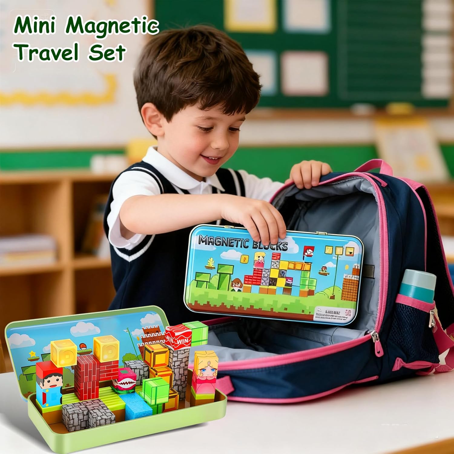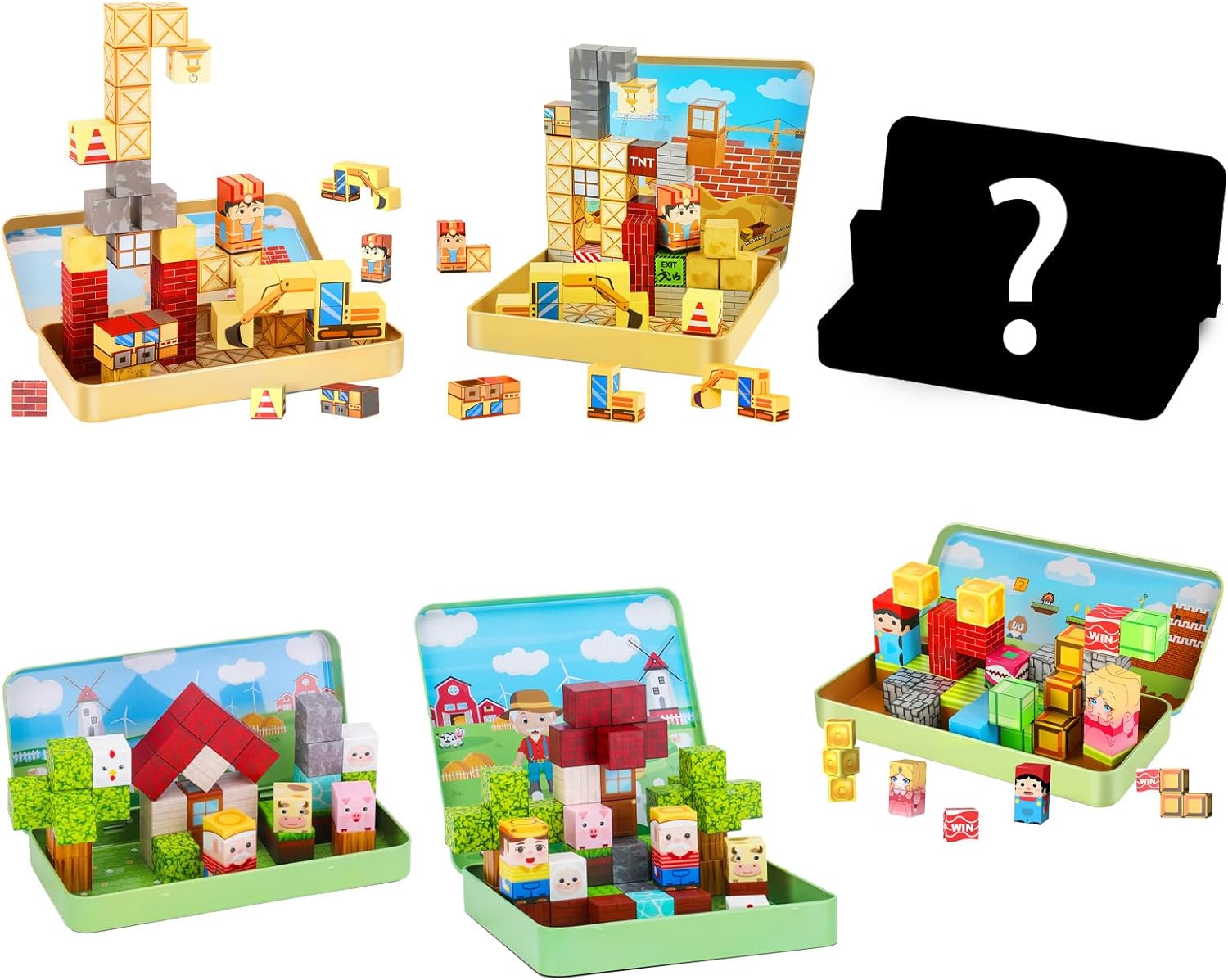 【Tema Scatola Misteriosa】Abbiamo molti temi disponibili, come il tema della fattoria, il tema del gioco, il tema dell'escavatore e altro ancora. Inviamo i temi in modo casuale e tu sei abbastanza fortunato da sceglierli. Giochiamo insieme al gioco della scatola misteriosa! 【Giocattolo da viaggio con blocchi magnetici】Il set di blocchi magnetici ZXTWTOY è dotato di una scatola di ferro che funge anche da piattaforma di costruzione. Perfetto per i viaggi, sia in aereo, in auto o in treno. 【Giocattolo didattico adatto ai viaggi】Il design compatto si adatta agli zaini, ideale per viaggi in auto, voli, soggiorni in hotel o per far giocare i più piccoli in movimento.Progettato specificamente per bambini dai 3 agli 8 anni. I bambini più piccoli possono divertirsi con semplici attività di impilamento ed esplorazione, mentre i bambini più grandi possono cimentarsi in costruzioni più complesse e giochi fantasiosi. 【Sicurezza e durata dei nostri blocchi magnetici】I nostri blocchi magnetici sono realizzati in plastica ABS atossica e sono conformi agli standard di sicurezza europei, ideali per i bambini. I potenti magneti garantiscono una connessione sicura e i bordi arrotondati facilitano il gioco dei bambini. L'attrazione magnetica consente un facile montaggio e i blocchi robusti sono costruiti per durare. 【Set versatile di blocchi magnetici STEM】 A differenza dei giocattoli con un design fisso, questi cubi magnetici da 2 cm consentono la costruzione libera e sono compatibili con altri blocchi. I bambini possono lavorare insieme per creare strutture più grandi, promuovendo il lavoro di squadra e il pensiero critico. 【Regalo perfetto per i bambini】Il set da viaggio con mattoncini magnetici per bambine e bambini è la scelta migliore come regalo di compleanno per bambini di 3, 4, 6, 7, 8, 9 e 10 anni. È adatto anche come bomboniere, regali per feste di compleanno, premi di classe, giocattoli educativi, premi giornalieri o regali di Natale.