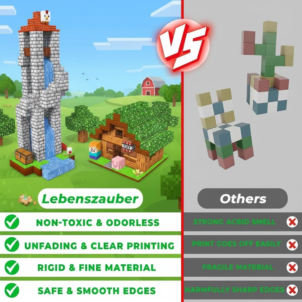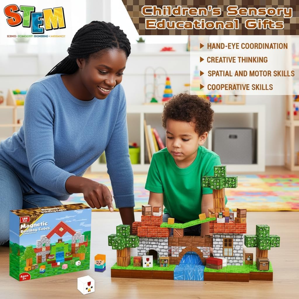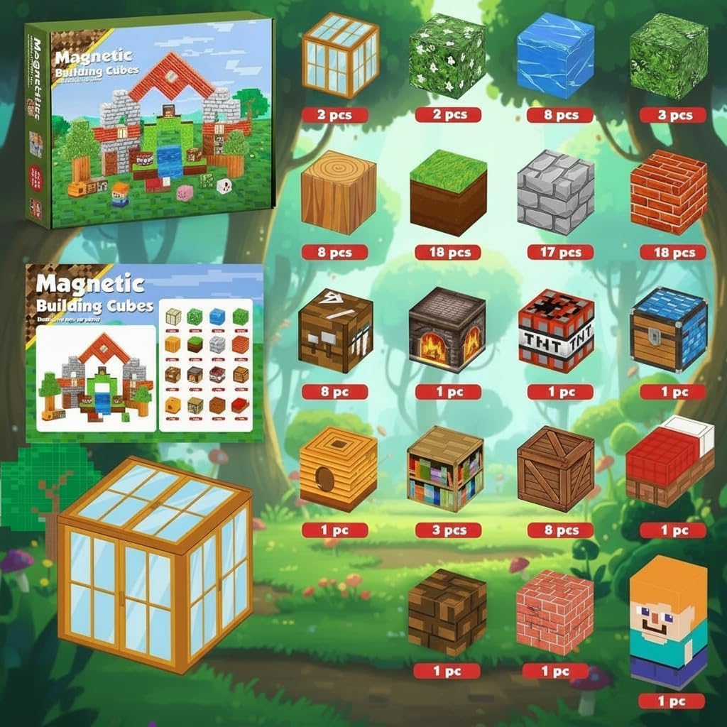 Costruzione magnetica: 100 giocattoli creativi da costruzione con dadi magnetici per un divertimento illimitato e possibilità di apprendimento ELEMENTI DI COSTRUZIONE VERSATILE: contiene cubi in diversi design come alberi, mattoni, acqua e animali per una variegata progettazione del paesaggio Giocattoli per l'apprendimento: promuove il pensiero spaziale, la creatività e le capacità motorie attraverso la costruzione e la ricostruzione liberi Istruzioni di costruzione: contiene istruzioni illustrate con diverse proposte di costruzione e possibilità di combinazione Compatibilità: i cubi magnetici aderiscono perfettamente l'uno all'altro e consentono una costruzione stabile e tridimensionale