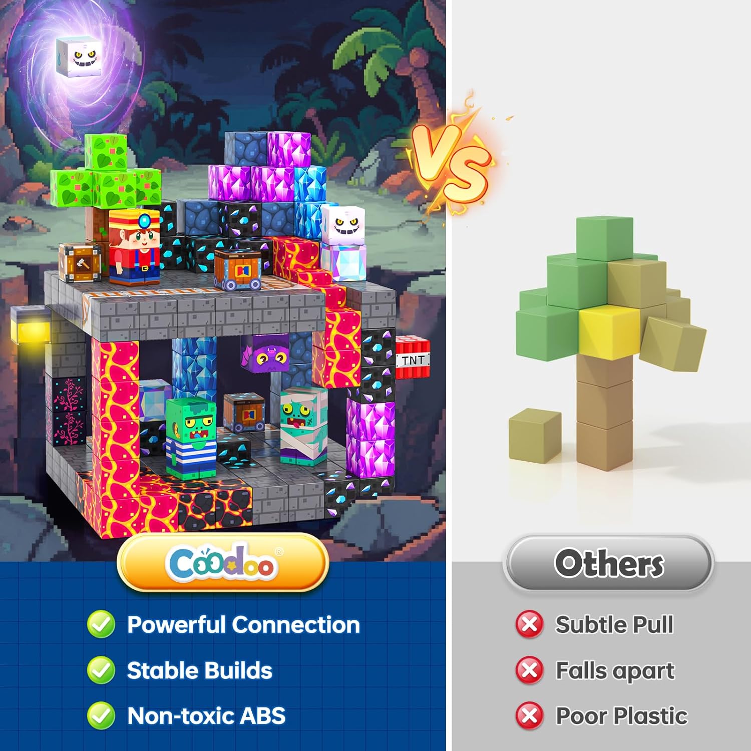 Unisciti alla Rainforest Mine Adventure: La leggenda narra che la foresta pluviale contiene innumerevoli gemme preziose, ma è anche invasa da zombie! Tuttavia, coraggiosi minatori si avventurano ancora in questa terra piena di lava in cerca di tesori. Unisciti alla caccia al tesoro ora! Lascia che questi blocchi magnetici da 100 pezzi ti portino in un mondo fantastico pieno di sfide e sorprese. Diventa il prossimo cacciatore di gemme! Costruire costantemente: realizzato con potente magnete di forza e plastica ABS di alta qualità, ogni blocco magnetico è costruito per resistere a ripetuti edifici. La forza magnetica forte ma equilibrata consente ai bambini di connettersi facilmente senza cadere a pezzi. Il materiale robusto protegge la sicurezza dei bambini e il potente magnetismo scatena la loro immaginazione. D'ora in poi, la costruzione è libera da restrizioni e la creatività non crolla mai. Blocchi di apprendimento STEM: questi blocchi di costruzione "auto-adsorbenti" utilizzano il loro potere magnetico magico per tenere i bambini lontani dagli schermi e avvicinarli al mondo reale della scienza. Mentre le piccole dita regolano strutture sbilanciate, il cervello sta costruendo una cognizione di simmetria geometrica e equilibrio della forza; quando gli edifici crollati vengono riprogettati per essere più stabili, i bambini acquisiscono non solo un senso di realizzazione, ma anche il pensiero sistematico degli ingegneri. Aumenta la creatività: dai vulcani in eruzione alle lussureggianti foreste pluviali, ogni blocco magnetico è una scintilla di ispirazione. La forma arrotondata, progettata specificamente per le mani piccole, rende facile per i bambini dai 3 anni in su di afferrare, migliorando silenziosamente la loro concentrazione, creatività e destrezza delle dita mentre costruiscono. La guida di ispirazione inclusa facilita la curva di apprendimento preservando il prezioso senso di realizzazione dei bambini. Regalo perfetto per i bambini: questo blocco magnetico non è solo un ottimo compagno per il gioco quotidiano dei bambini, ma anche un regalo perfetto per qualsiasi vacanza: compleanni, festa dei bambini, Natale, ritorno a scuola, tempo in famiglia o attività STEM all'asilo. Porta un'esperienza creativa e gioiosa, consentendo ai bambini di imparare attraverso il gioco e crescere attraverso la creatività!