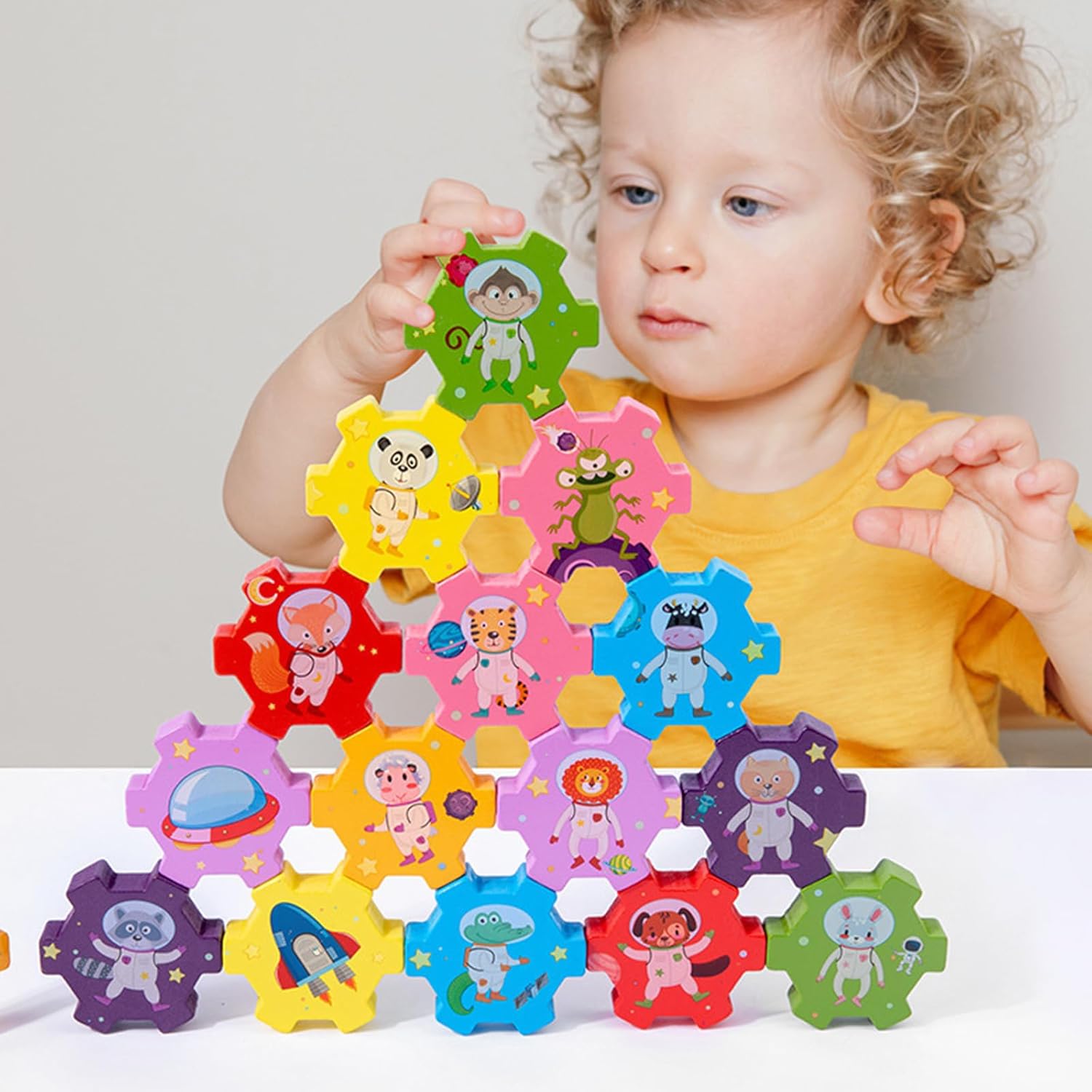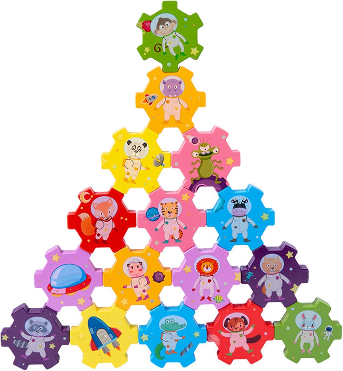 Come giocare: pacchetto contiene vari blocchi e cilindri a forma esagono con modello tema dello spazio, impilando i blocchi più in alto possibile, quindi posiziona i cilindri nella torre, mantieni l'equilibrio e la difficoltà aggiornata, attraverso gioco per incoraggiare e migliorare lo sviluppo del cervello dei bambini, l'esercizio e migliorare la coordinamento delle mani e occhi Giocattolo interattivo per blocchi: sicurezza e design interessante con blocchi impilamento colorati e vari spaziali, facili da migliorare la concentrazione dei bambini e con buona stimolazione all'allenamento educativo per i bambini, migliorano le loro capacità costruzione e le abilità delle capacità equilibrio, riconoscimento del colore e l'ordinamento, costruisci relazione interazione tra i genitori-bambini Materiale qualificazione: giocattolo realizzato con legno massiccio qualificazione, con acqua non tossica stampata, bordi lisci lucidati e resistenza all'usura, sicuro per i tuoi bambini Per un regalo ideale per i più piccoli età compresa tra 3 e 6 anni: adatto ai bambini come regalo compleanno, regalo Natale, bambini lattine per giocare da soli o con genitori, condivisione dei compagni gioco, un fantastico blocco per costruire la relazione interattiva genitore-figlio Equilibrio allenamento giocattolo impilamento: i blocchi impilamento richiedono pazienza, i bambini devono concentrarsi per evitare fallimento, giocando per migliorare le capacità costruzione e equilibrio dei bambini e pratiche base delle abilità motorie base