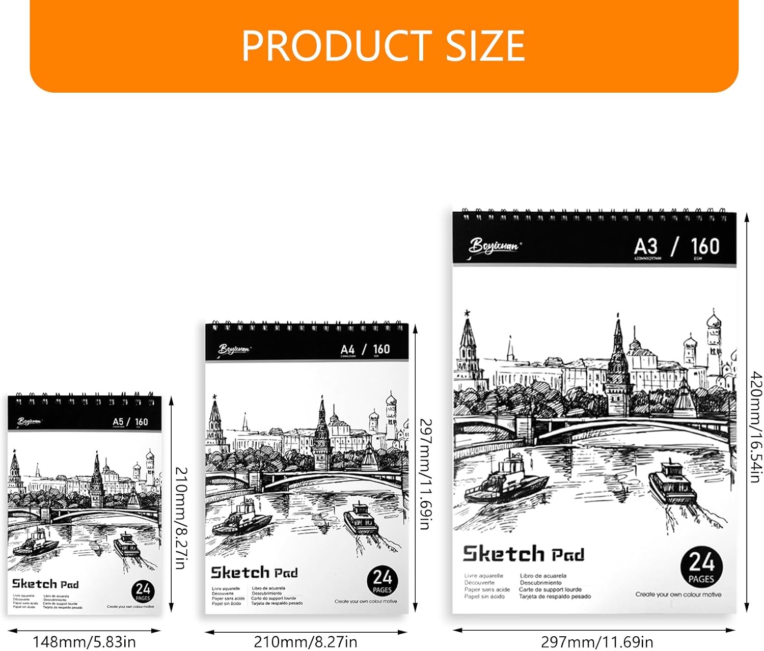 Adatto per studenti che documentano diari visivi, schizzi che catturano scene all'aperto e professionisti creativi che richiedono quaderni portatili per ispirazione spontanea Utilizzare durante il brainstorming in caffetteria, schizzi di viaggio, viaggi di pittura ispirati alla natura o progetti in studio che richiedono pagine resistenti al sanguinamento che gestiscono lavaggi ad acquerello e inchiostri tratteggiati senza soluzione di continuità Le superfici lisce con rivestimento speciale garantiscono scivolamenti per matite e penne, presenta 24 pagine di carta da 160 g/m² di grado artistico che resiste agli strappi mantenendo costantemente la consistenza durante le illustrazioni dettagliate La carta spessa impedisce agli inchiostri di sanguinare e resiste a schizzi vigorosi, rendendo questo album da disegno a doppio filo ideale per disegnare senza problemi con pennarelli ad acquerello, matite colorate, penne acriliche e pigmenti misti Si combina con carta spessa versatile funzionalità come album da disegno di viaggio, diario e quaderno