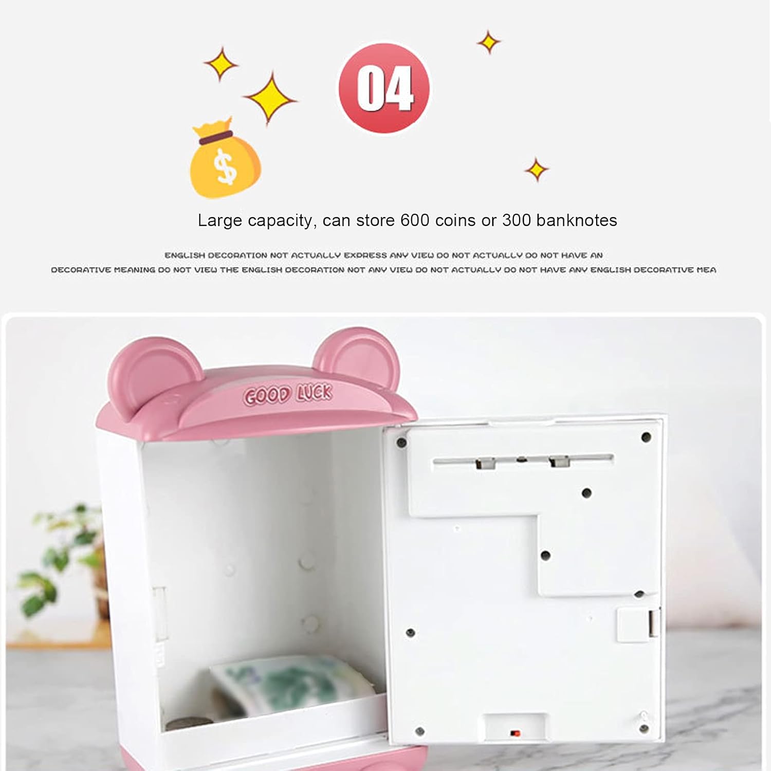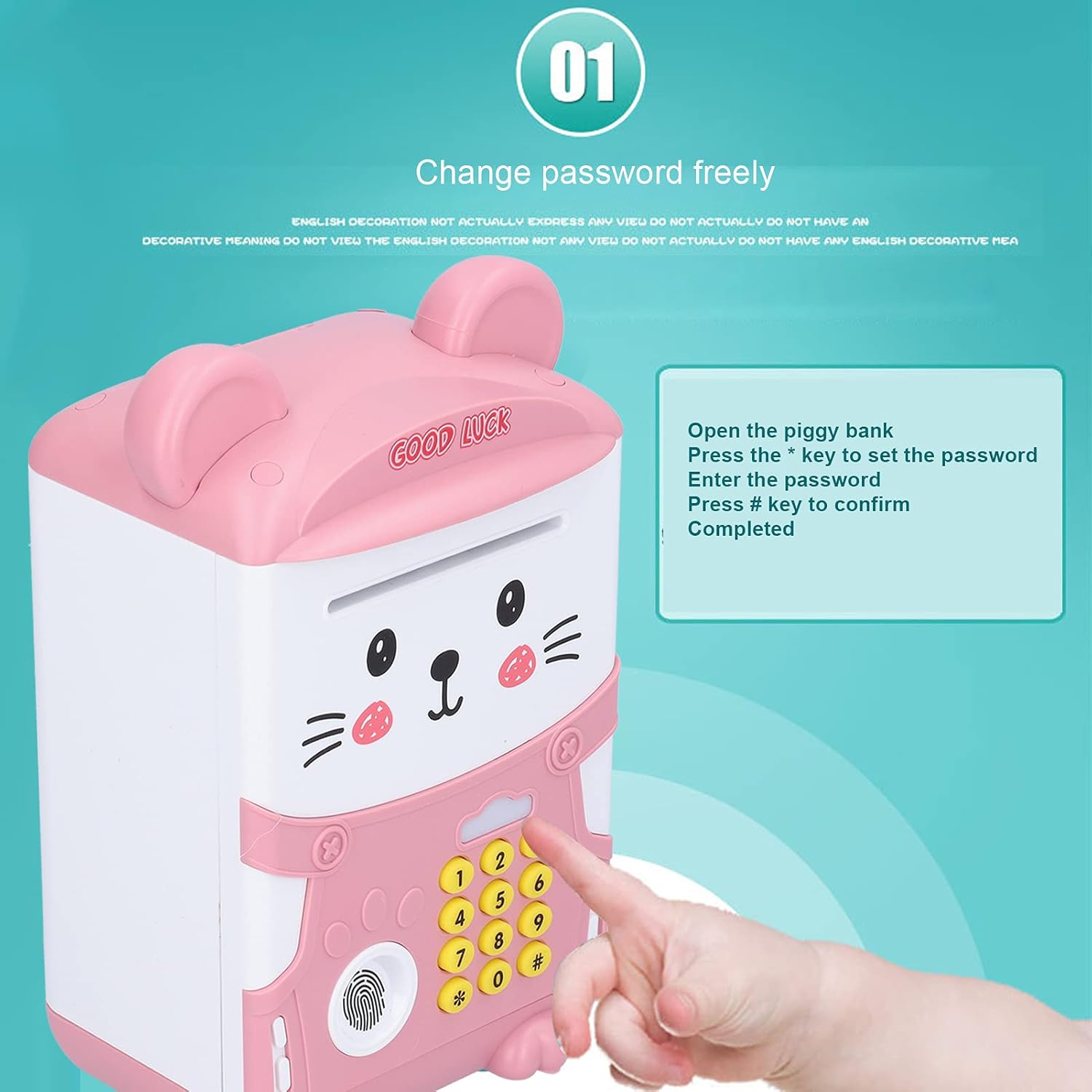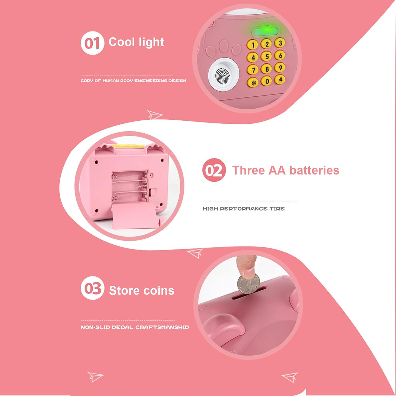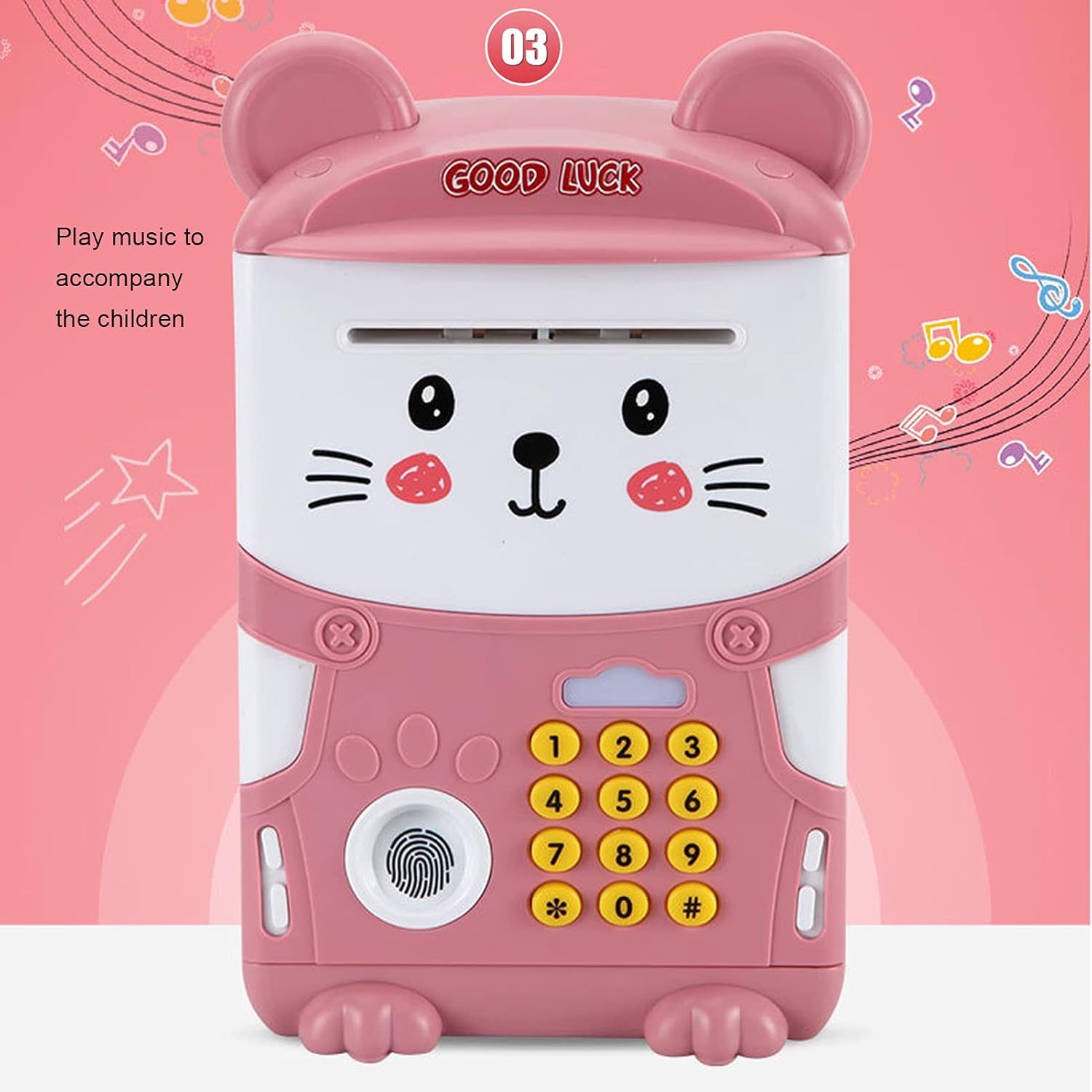 【Banca di denaro multifunzionale】La Money Save Bank può accettare contanti e monete. Non solo una cassetta di risparmio, ma anche una cassaforte con password per impronte digitali. Aumenta la consapevolezza di tuo figlio sulla sicurezza della proprietà, può essere utilizzato per conservare giocattoli, gioielli, carte da baseball, ecc. Progettato per aiutare i bambini a risparmiare denaro, può contenere circa 600 monete o 100 banconote, adatte ai bambini. 【Il miglior giocattolo per bambini】 Questo è un salvadanaio elettronico di alta qualità per risparmiare contanti e monete. Adotta la narrazione e il canto, 3 filastrocche integrate possono accompagnare tuo figlio senza sentirsi solo. È il migliore per regali di compleanno per bambini e regali di festa come Natale, Capodanno. Fornisce un'opportunità positiva ai bambini di apprendere le virtù del risparmio di denaro e di sviluppare buone abitudini nella gestione finanziaria. 【Funzionamento a batteria】 Alimentato da 3 batterie AA (non incluse), aggiunge più divertimento per i bambini e attira facilmente i bambini. 【Sicuro e servizio】 La gettoniera è materiale di protezione ambientale, struttura a prova di simulazione, buona resistenza all'usura non è facile da corrodere.