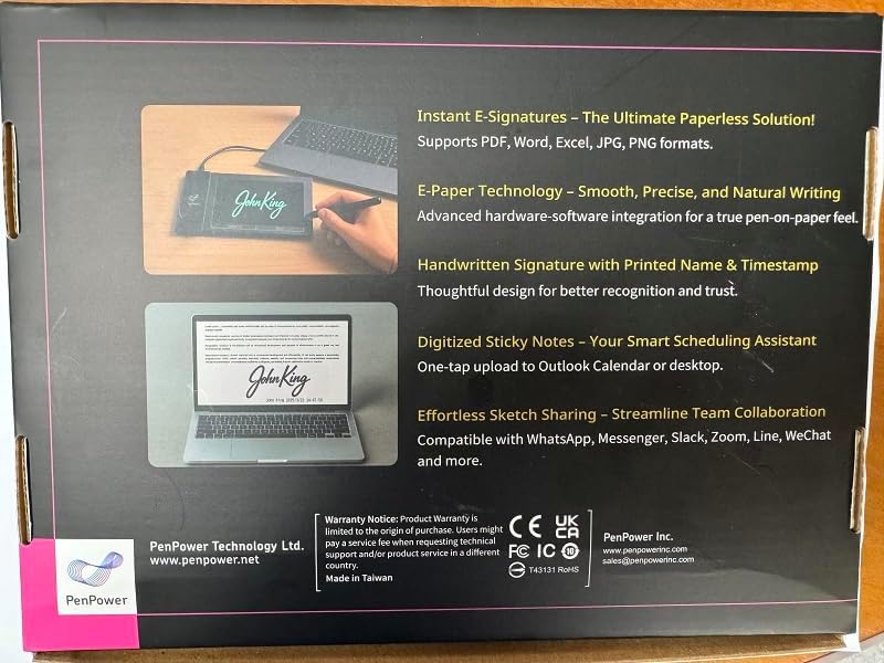 Firme elettroniche istantanee con un solo clic: invia facilmente la tua firma scritta a mano al tuo computer con un solo clic. Pienamente compatibile con i formati PDF, Word, Excel, JPG, PNG e TIFF. Il tuo eroe dell'ufficio senza carta: firma preventivi, contratti, moduli assicurativi e approvazioni interne senza nemmeno stampare una pagina. Completa i tuoi documenti in modo rapido e sicuro, al 100% digitale. Timestamp integrato e nome stampato: ogni firma include un timestamp e il tuo nome stampato per una maggiore credibilità e tracciabilità, ideale per uso aziendale e legale. Note adesive intelligenti, consegnate digitalmente: scrivi promemoria e scaricali immediatamente sul tuo calendario o desktop di Outlook. Il tuo assistente personale per una pianificazione intelligente e organizzata. Collaborazione visiva semplice: disegna flussi di lavoro, wireframe o scambia idee in tempo reale. Perfetto per i team che si muovono rapidamente e pensano visivamente. Compatibile con WhatsApp, Messenger, Slack, Zoom, WeChat, Line, Viber e KakaoTalk. L'utente può inserire l'immagine della firma nei documenti tramite SDK. Le informazioni includono coordinate X/Y/Z, pressioni, tempo e dati biometrici della firma. L'SDK fornisce l'integrazione della firma elettronica con i sistemi aziendali interni, anche con le interfacce web.