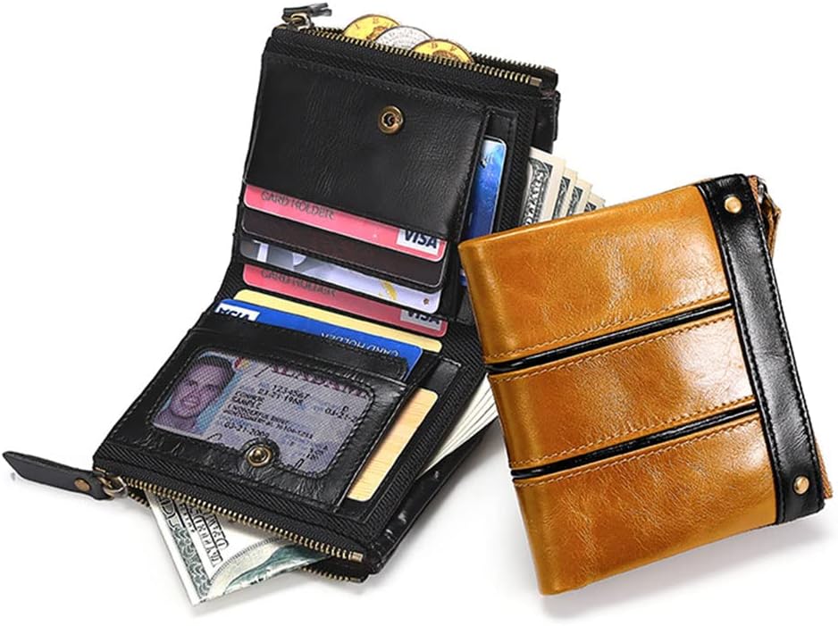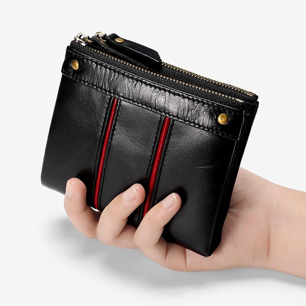 ❀ Pelle alla moda e confortevole. Portafoglio da uomo, sembra fantastico e Grande capacità: questo portafoglio in pelle pieghevole può soddisfare tutte le tue esigenze, carte, carte di credito, contanti, monete e così via può essere perfettamente adattato e posizionato. Dimensioni compatte: il portafoglio con cerniera è abbastanza piccolo da mettere il portafoglio nella tasca dei vestiti, dal casual al lavoro, ideale per i viaggi o l'uso quotidiano. ❀ Blocco della sicurezza: la tecnologia di blocco di sicurezza protegge la tua e la tua carta di credito dagli scanner indesiderati. ❀ Occasione: è un ottimo articolo per te o per amici e familiari per compleanno, anniversario, Ringraziamento, Natale e altre occasioni.