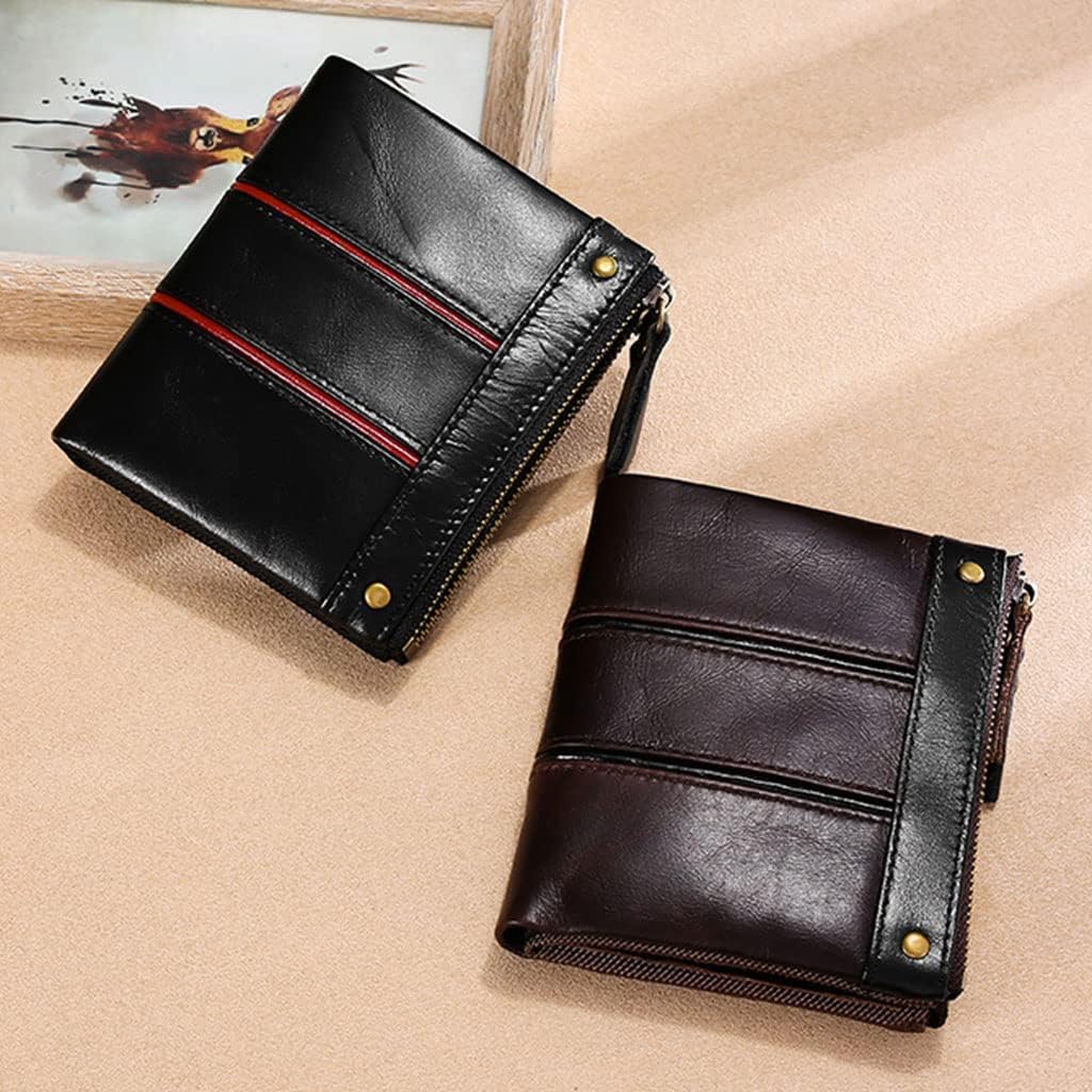 ❀ Pelle alla moda e confortevole. Portafoglio da uomo, sembra fantastico e Grande capacità: questo portafoglio in pelle pieghevole può soddisfare tutte le tue esigenze, carte, carte di credito, contanti, monete e così via può essere perfettamente adattato e posizionato. Dimensioni compatte: il portafoglio con cerniera è abbastanza piccolo da mettere il portafoglio nella tasca dei vestiti, dal casual al lavoro, ideale per i viaggi o l'uso quotidiano. ❀ Blocco della sicurezza: la tecnologia di blocco di sicurezza protegge la tua e la tua carta di credito dagli scanner indesiderati. ❀ Occasione: è un ottimo articolo per te o per amici e familiari per compleanno, anniversario, Ringraziamento, Natale e altre occasioni.