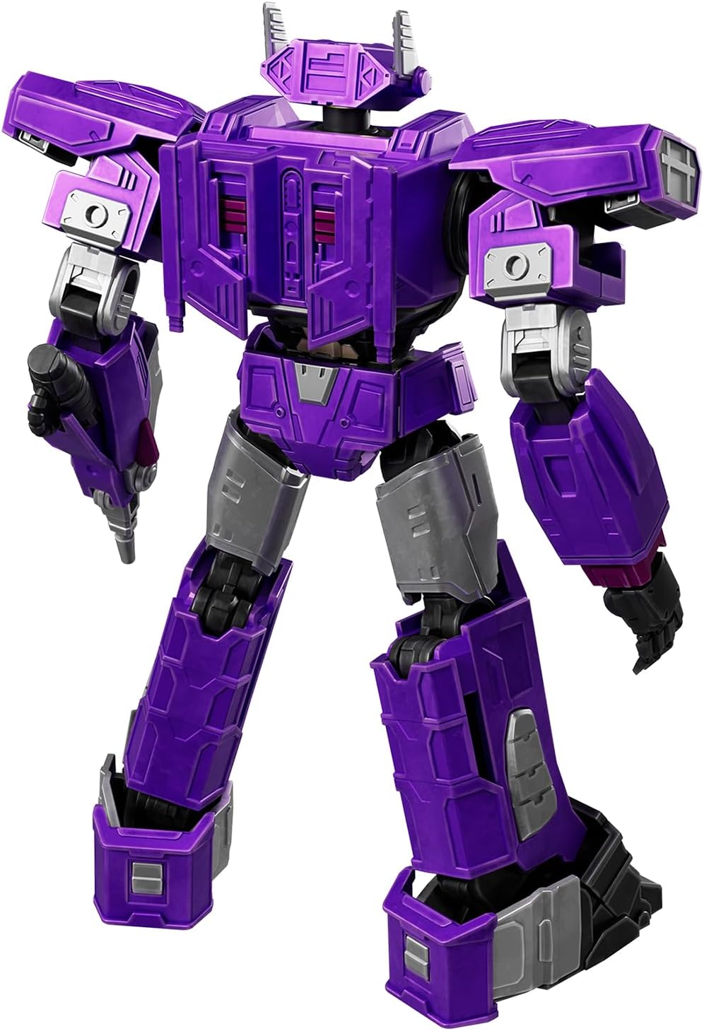 Design luminoso Gli occhi e il petto illuminati danno vita a Shockwave con un bagliore minaccioso, migliorando la visualizzazione e catturando la sua presenza fredda. Posa dinamica 20 punti di articolazione, tra cui articolazioni migliorate, consentono diverse posizioni di combattimento e pose precise per film. Design cinematografico autentico Una meticolosa ricreazione di Shockwave di Transformers One, catturando il suo aspetto iconico. Arsenale completo Include armi e accessori specifici per il personaggio per ricreare scene iconiche e migliorare la giocabilità. Montaggio semplice 86 pezzi si agganciano facilmente insieme senza attrezzi, colla o vernice, rendendolo accessibile a tutti i livelli di abilità. Artigianato dettagliato I dettagli squisiti catturano la natura spietata e logica di Shockwave, rendendolo un pezzo da collezione.