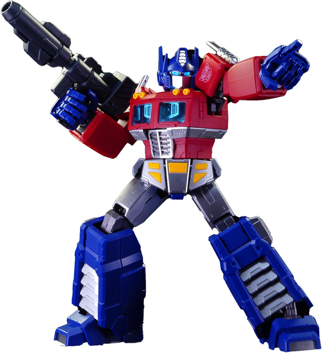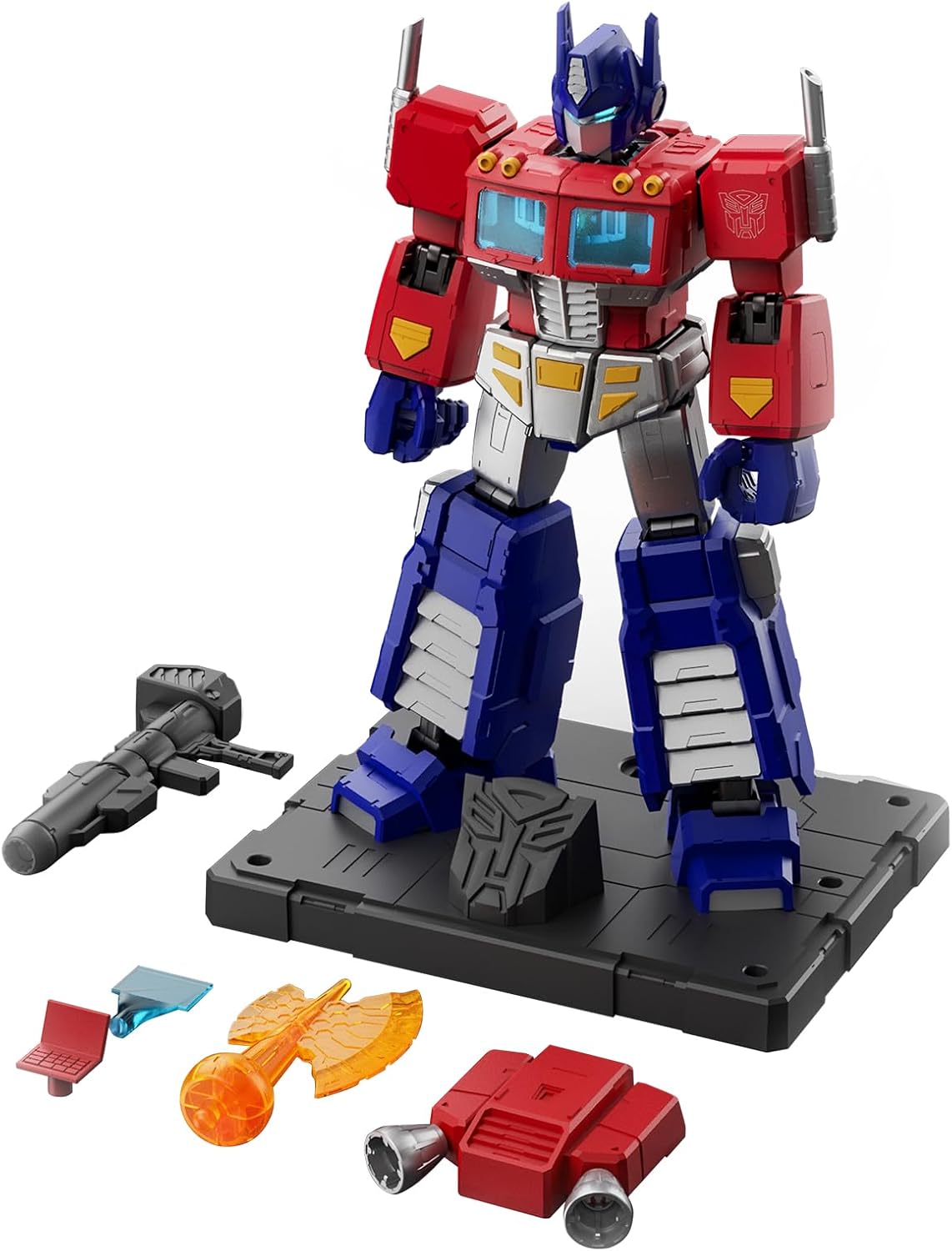 Figure Transformers Blokees con licenza ufficiale Questa figura con licenza ufficiale di Blokees cattura fedelmente il design iconico di G1 Optimus Prime della serie classica Generation 1. 45 giunti mobili e scheletro meccanico Con 45 punti di articolazione e uno scheletro meccanico progettato con precisione, questa figura consente di ricreare pose classiche con mobilità superiore e struttura interna dettagliata. Modulo di luce magnetica Dotato di un modulo di luce magnetico all'avanguardia, Blokees Action Edition G1 Optimus Prime dà vita alla tua figura con effetti visivi sorprendenti. A differenza dei modelli precedenti che richiedevano scuotimento per attivare le luci, questo design innovativo utilizza un grilletto magnetico. Quando un pezzo magnetico viene avvicinato al modulo luminoso, si attiva, facendo brillare gli occhi e illuminando la Matrix of Leadership rimovibile. Questa funzione dinamica non solo migliora l'estetica ma aggiunge anche un elemento interattivo e coinvolgente al display. Ricchi accessori e armi Completa di un jet pack, cannone laser, ascia energon, avatar holomatter, comunicatore e mani articolate, questa figura offre una vasta gamma di accessori per ricreare scene di battaglia epiche e momenti iconici. Facile da montare Con 188 pezzi, questa figura offre un'esperienza di assemblaggio dettagliata e intricata. Nonostante la sua complessità, l'assemblaggio è progettato per essere semplice, garantendo un setup fluido e soddisfacente.