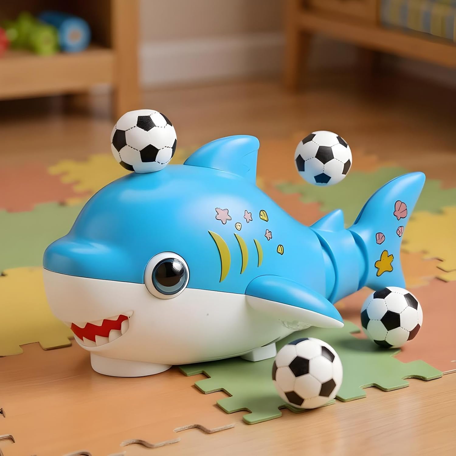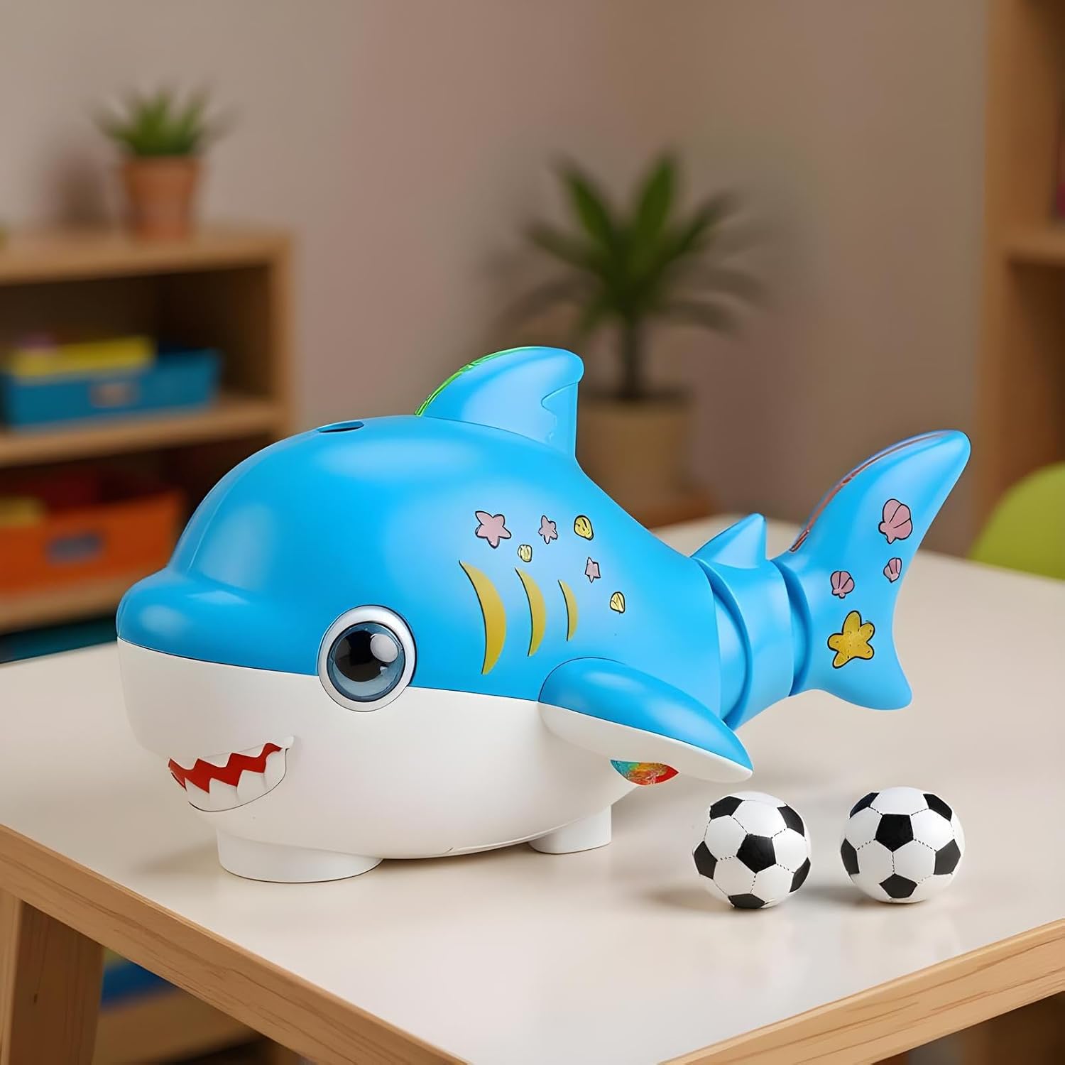 Interactive Light & Sound: Blowing floating ball toy stimulates multiple senses, using shifting colors and rhythmic t, to create a captivating playtime environment Interactive Learning Tool: The ball-blowing toy fosters logical thinking development through interactive play, with a smart early education system and auto-sensing air blower, for engaging two-ball motion activities designed to stimulate cognitive skills naturally during playtime experiences Improved Grip Balls: Develop collaborative social skills with two specially designed, non-slip balls that improve teamwork building, and create opportunities for parent-child interaction Energy-Saving Auto Mode: Designed with an automatic sleep feature, this product suits various environments, ensuring quiet use at home or school through its efficient and compact motor system Fun Shark Design Play: Enjoy the excitement of a floating ball toy featuring a playful shark design with movable components, fostering hand-eye coordination during entertaining play trainings