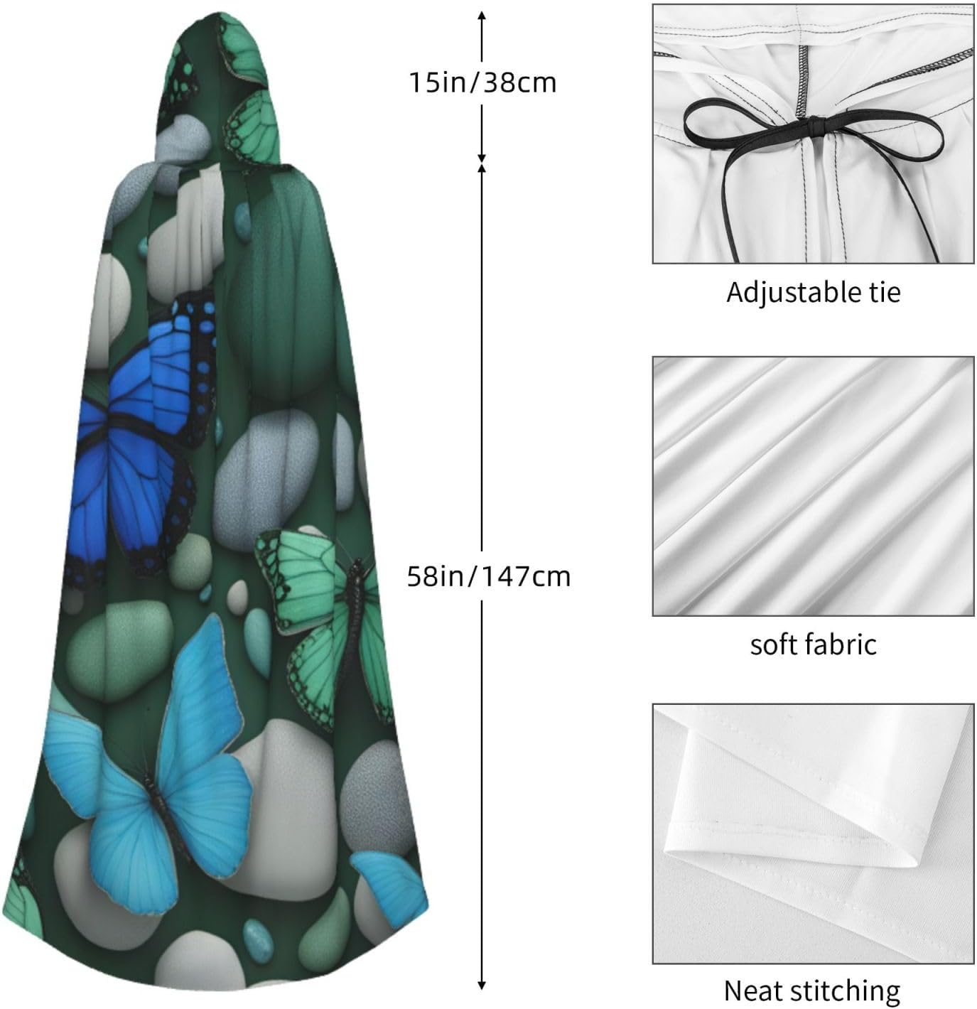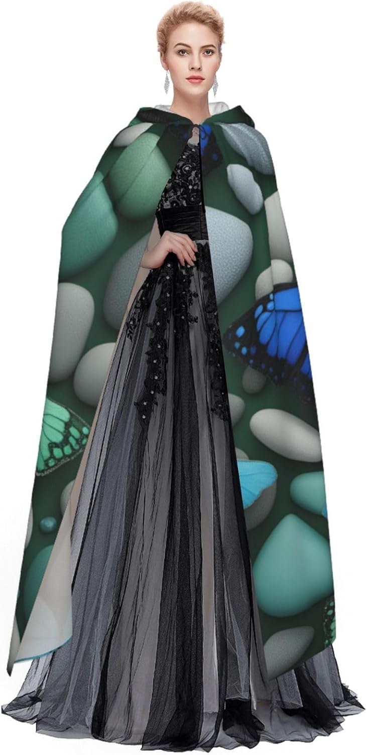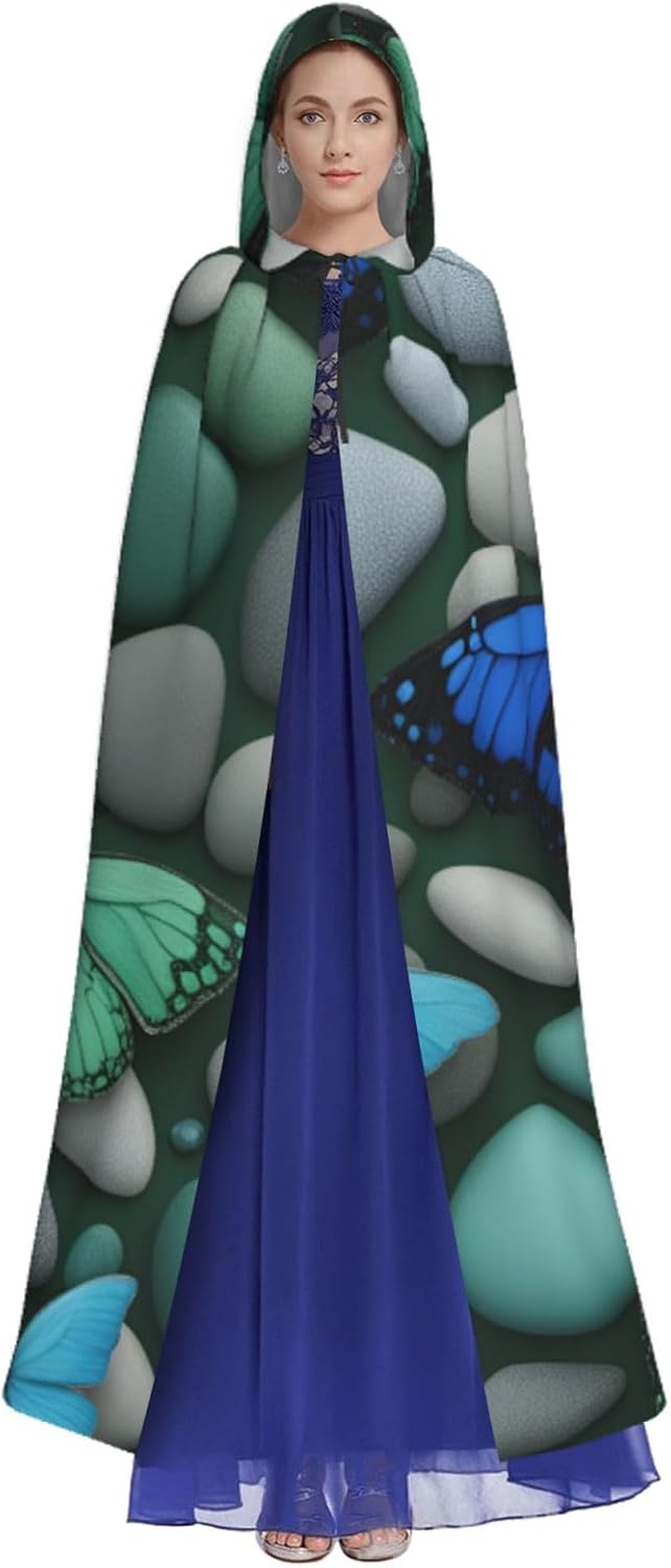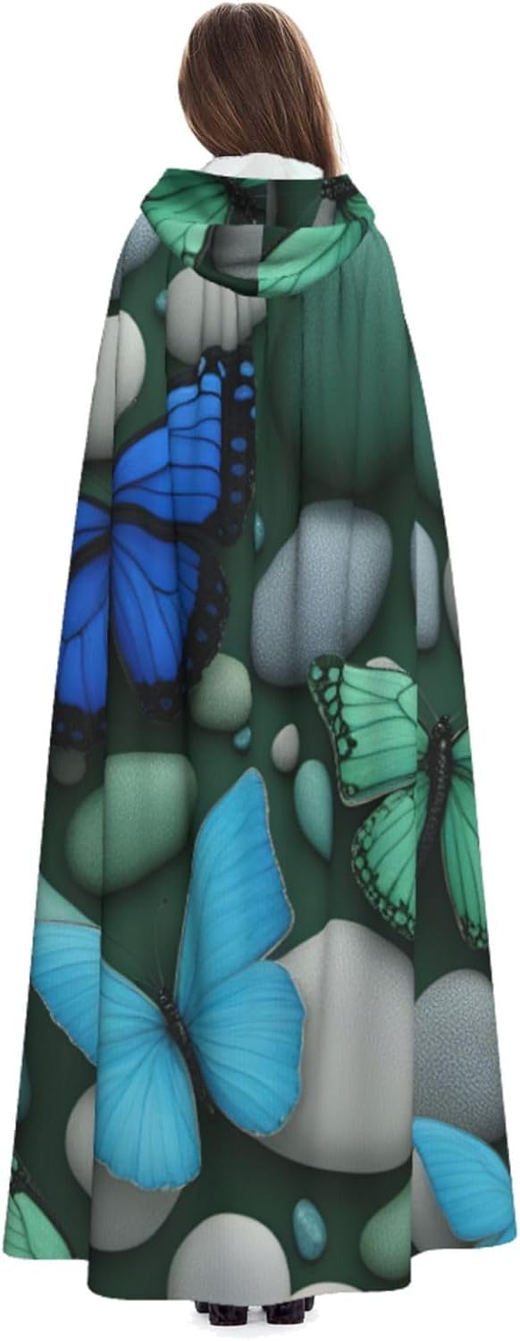Blu farfalla verde farfalla e pietra stampa adulto mantello lungo mantello con cappuccio Natale Halloween costumi festa a tema giochi di ruolo