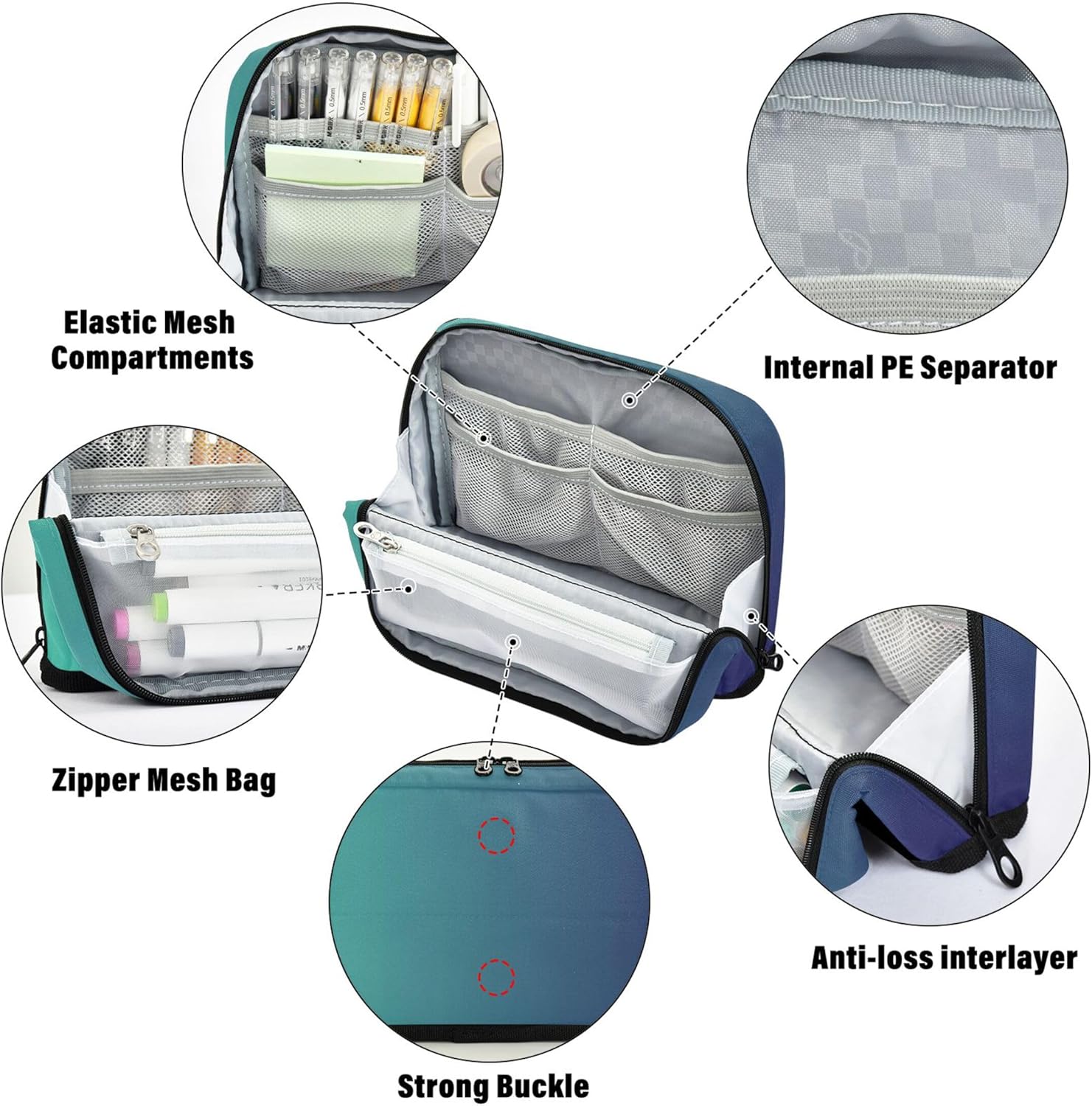 Design intelligente della struttura: l'astuccio rosa si trasforma in un supporto con chiusura magnetica quando piegato, offrendo una visione chiara e un facile accesso alle tue forniture Materiale di alta qualità: realizzato in resistente tessuto di nylon, l'astuccio è resistente ai graffi, facile da pulire e costruito per resistere all'usura quotidiana Massimo spazio di archiviazione: l'astuccio utilizza un layout interno intelligente con tasche multiple per contenere tutto, dagli strumenti di scrittura ai piccoli accessori in ordine Multiuso: i sacchetti per matite con cerniera funzionano come astuccio per penne, trousse per trucchi, kit da viaggio o organizer per ufficio, ideali per scuola, lavoro, gite e uso quotidiano Regalo premuroso e utile: con motivi accattivanti e supporto personalizzato, la custodia per il trucco diventa un regalo pratico ma sincero per qualsiasi età o stile di vita