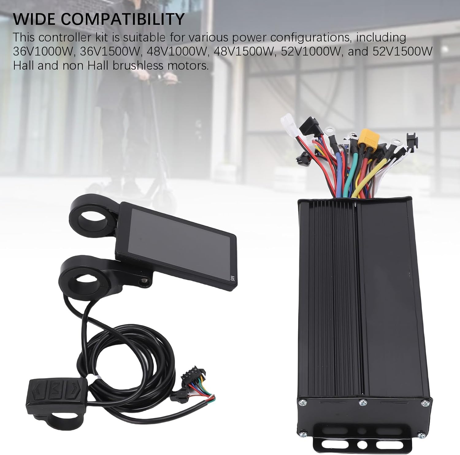 [Prestazioni stabili] Dotato di un chip intelligente ad alte prestazioni per un funzionamento affidabile in varie condizioni, garantendo corse fluide. [Ampia compatibilità] Supporta molteplici configurazioni di alimentazione tra cui configurazioni a 36 V, 48 V e 52 V, soddisfacendo le diverse esigenze degli scooter elettrici. [Dissipazione efficiente del calore] Il design dell'involucro in lega di alluminio consente un'efficace gestione del calore durante un utilizzo prolungato maggiore durata. [Display intuitivo] Lo schermo LCD M5 offre un monitoraggio chiaro e intuitivo della velocità e dei livelli della batteria migliore esperienza di guida. [Tecnologia avanzata dell'onda sinusoidale] Dispone di un controller a onda sinusoidale a tre modalità per un'accelerazione più e un funzionamento più silenzioso del motore.