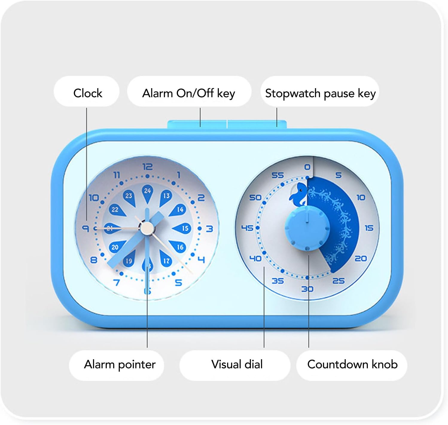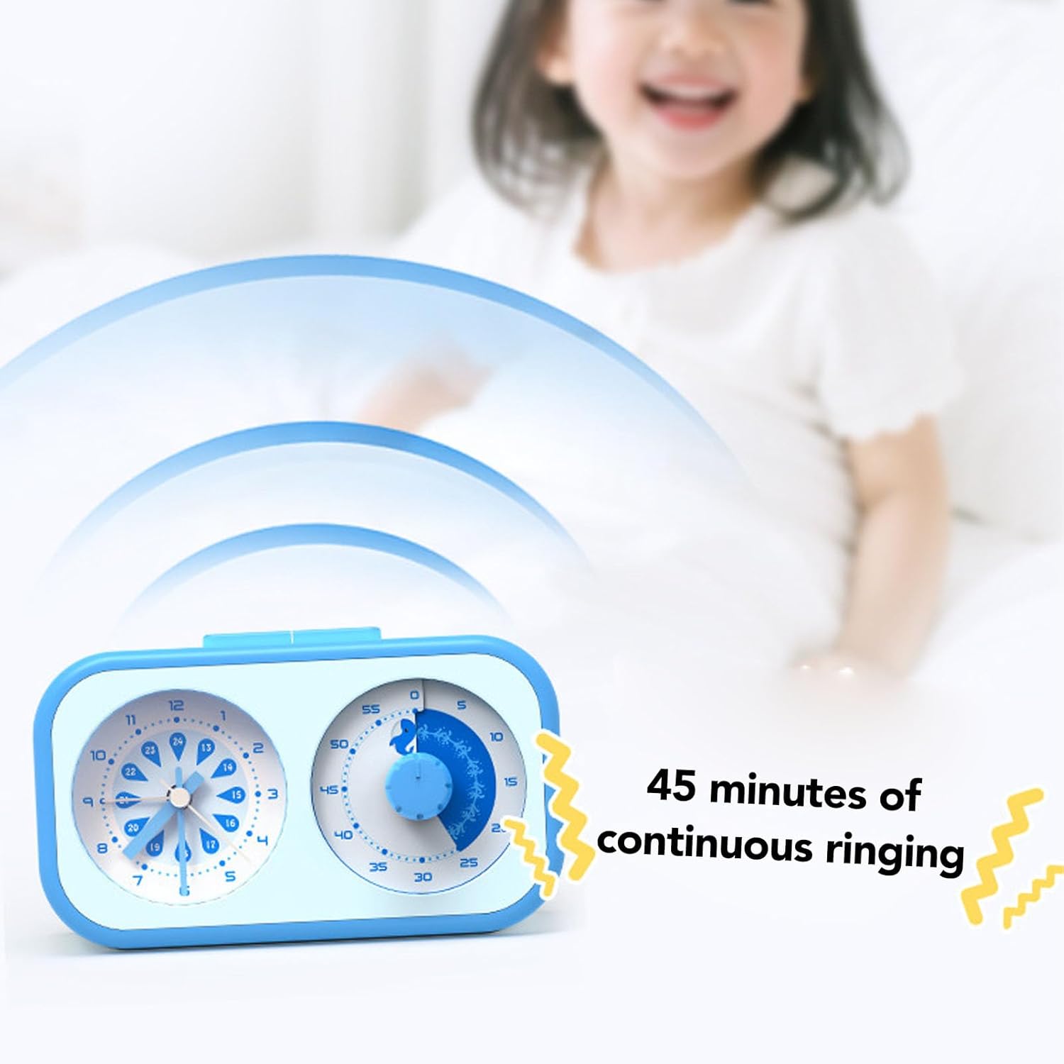 [Design multifunzionale] Combina un timer per il conto alla rovescia, un orologio analogico e una sveglia in un'unica unità compatta migliore gestione del tempo. [Conto alla rovescia visivo coinvolgente] Il display unico mostra il tempo trascorso, rendendo divertente per i bambini comprendere in modo efficace i concetti di tempo. [Funzionamento silenzioso] Nessun ticchettio garantisce la concentrazione durante lo studio, la lettura o il sonno, per mantenere la concentrazione. [Utilizzo semplice] Il meccanismo di rotazione consente un facile utilizzo da parte dei bambini per l'impostazione e la gestione del tempo. [ di allarme efficace] Un forte allarme suona fino a 45 minuti, aiutando i genitori a stabilire la routine mattutina per la scuola.