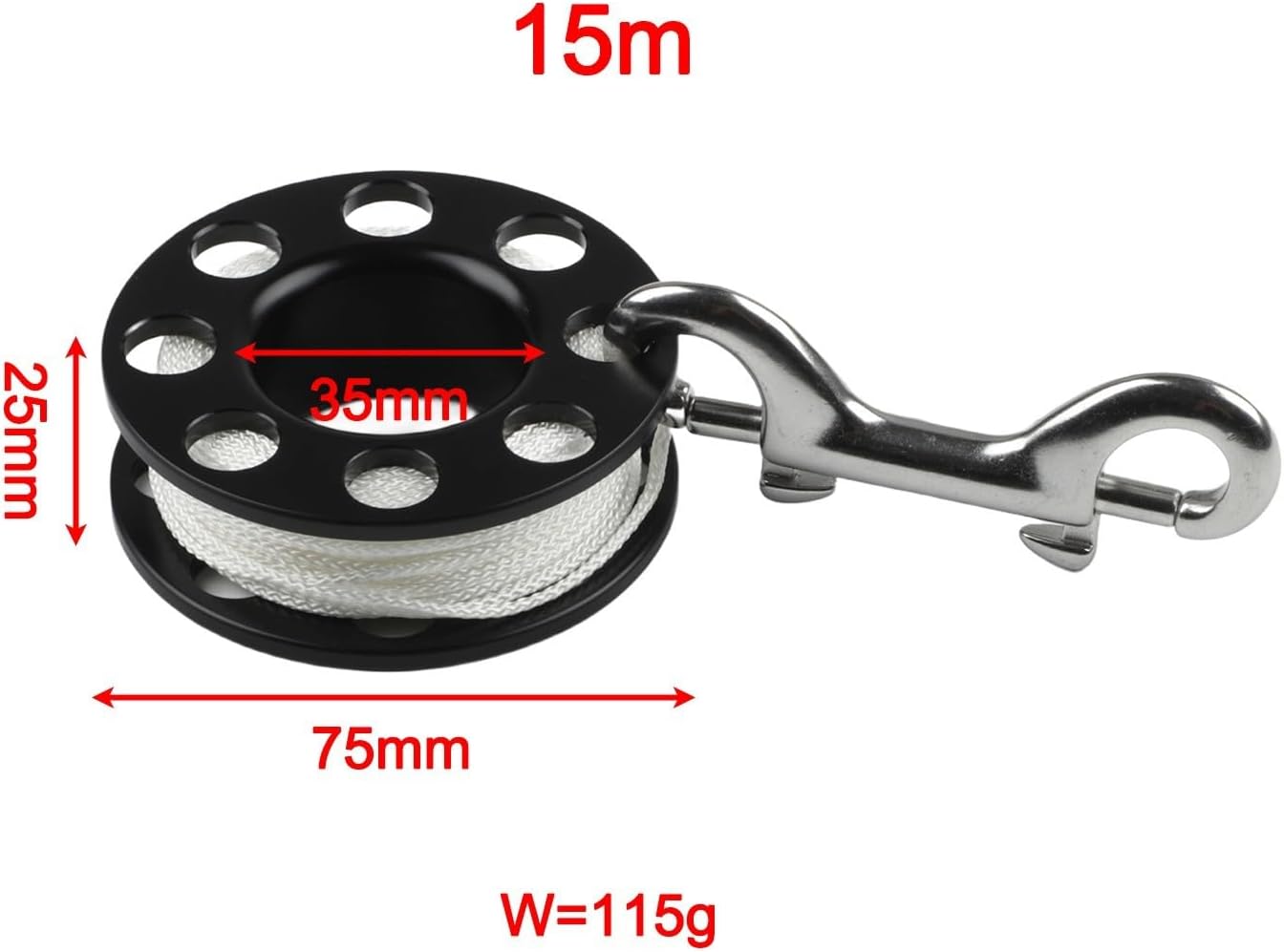 Design compatto: questo mulinello da immersione presenta una struttura piccola e a basso profilo, risparmiando spazio nella configurazione dell'attrezzatura subacquea; il suo meccanismo pieghevole consente una facile conservazione e trasporto, rendendolo comodo per le avventure subacquee dove l'efficienza è importante Lunghezze versatili: disponibile in opzioni da 15 m, 30 m e 50 m, questo mulinello da immersione fornisce la giusta lunghezza della linea per vari scenari di immersione, dalle esplorazioni poco profonde alle immersioni più profonde, hai una linea adeguata per la sicurezza e la navigazione Funzionamento fluido: con un meccanismo di avvolgimento intuitivo, questo mulinello semplifica l'implementazione e il recupero della linea, migliorando il controllo e riducendo i grovigli durante le attività subacquee per un'esperienza più piacevole e sicura Per materiali duraturi: costruito con componenti in nylon, plastica e acciaio, questo mulinello da immersione di lunga durata resiste e all'usura, offrendo prestazioni affidabili in ambienti di acqua salata mantenendo proprietà leggere per una facile maneggevolezza Fissaggio sicuro: dotato di un doppio gancio a scatto da 90 mm, questo mulinello fornisce un collegamento forte e veloce alla tua attrezzatura, aiutando a evitare sconnessioni accidentali e migliorando la sicurezza generale durante le escursioni subacquee