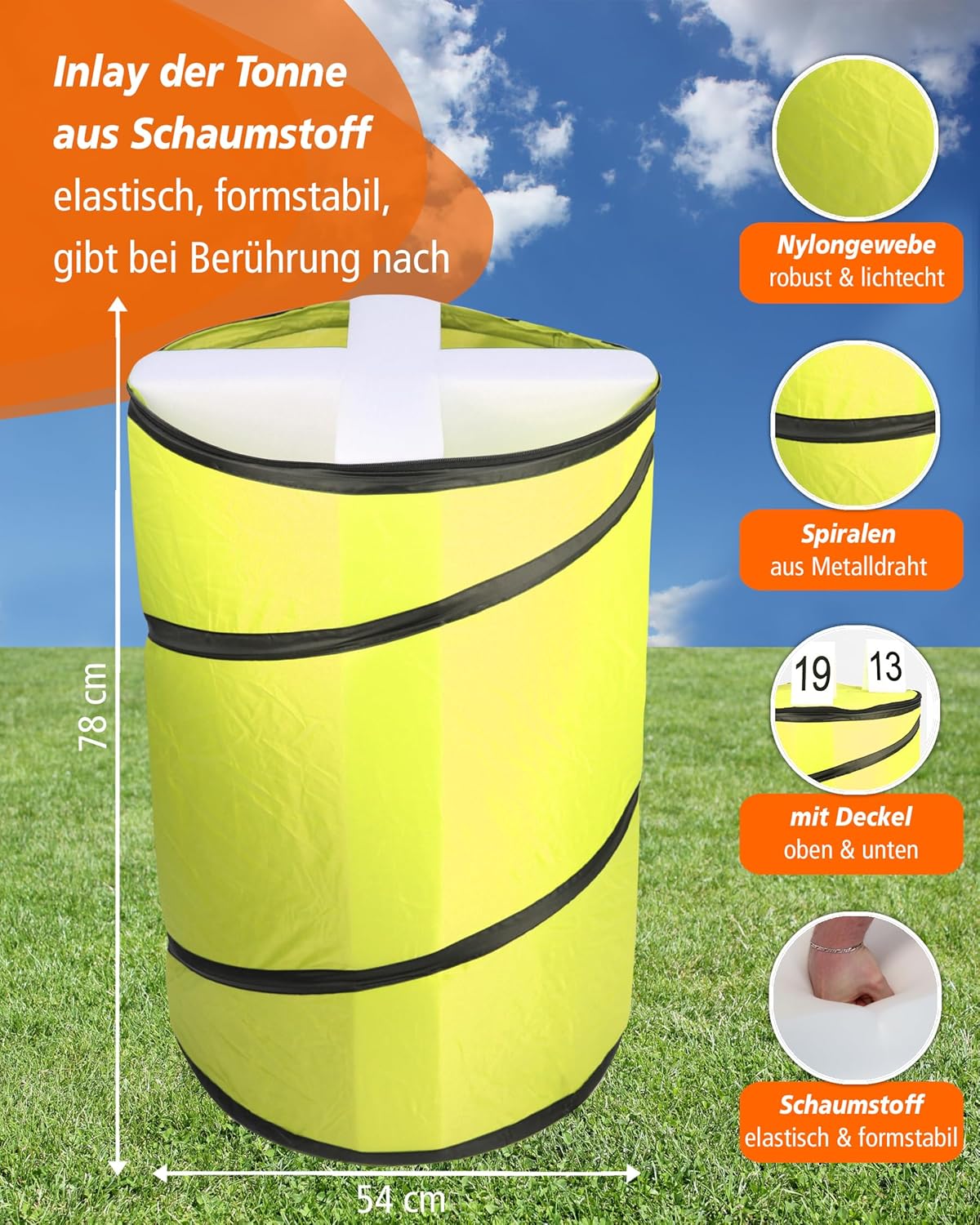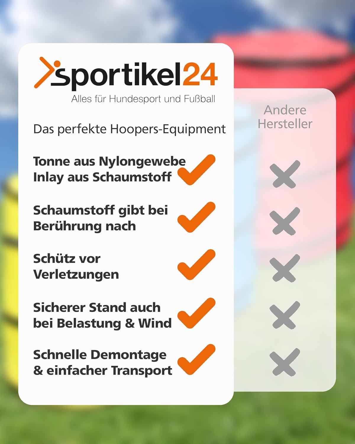 Massima stabilità: la combinazione di bidone pop-up e inserto in schiuma garantisce una presa sicura su qualsiasi superficie. Resistente alle intemperie e indeformabile: barile in nylon con anima in schiuma su misura, ideale per l'allenamento tutto l'anno in club o in giardino. Pronta all'uso: il serbatoio si apre da solo, basta inserire l'inserto per una stabilità immediata senza attrezzi. Fissabile e trasportabile: con linguette inferiori e due picchetti in metallo per la sicurezza, coperchio richiudibile e borsa per il trasporto inclusi. Parte della famiglia Superdog: per un allenamento intelligente con il cuore, il tuo cane merita strutture chiare e percorsi sicuri.