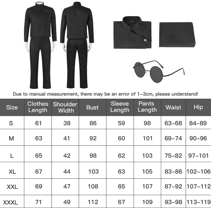 Vestito molto bello e rifinito bene. Veste poco, consiglio una taglia sopra. Metto solo 3 stelle perché nel pacco mancavano gli occhiali che sono specificati nella descrizione dell'articolo.