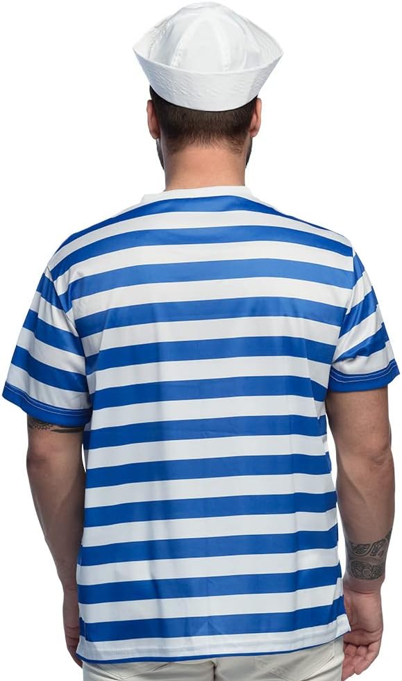 Descrizione Questo costume da marinaio di Boland da 2 pezzi è un must per l'addio al celibato o la festa di carnevale. Sono inclusi un berretto e la camicia a righe marinai per adulti. Il set di costume è disponibile in una taglia unica per adulti. I colori marini blu e bianco dominano questo outfit. È un costume di carnevale originale o per la festa a tema. Abbinato con altri accessori o una parrucca Boland (non inclusa) per completare il travestimento per la prossima festa. Altri bellissimi articoli per feste e costumi sono disponibili nel nostro negozio di marca. Fare clic sul marchio Boland sotto il titolo del prodotto. Avviso di sicurezza sconosciuto