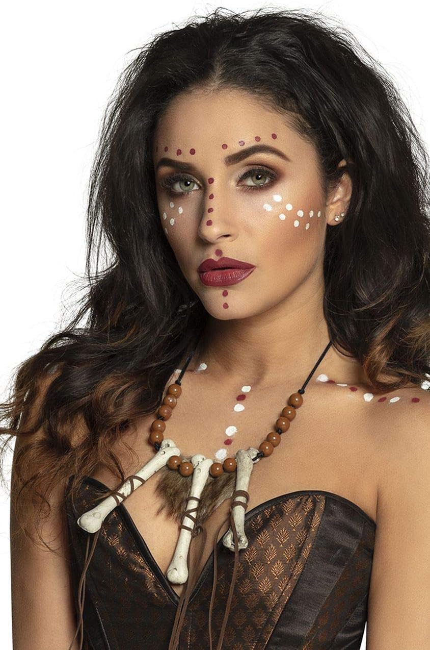 Siete ancora alla ricerca di un accessorio per il vostro costume da indiano o da Neanderthal Allora questa collana Voodoo, della marca Boland, è ciò che fa per voi La particolarità di questa collana sono le tre ossa tra le perle marroni che pendono nella scollatura Con questa collana avrete molti sguardi indiscreti Si tratta di un accessorio versatile e combinabile Nel nostro negozio troverete altri bellissimi articoli per feste e costumi. Clicca sul nome del marchio Boland sotto il titolo del prodotto