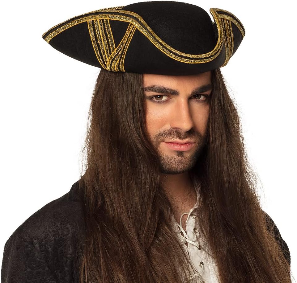 Also, mal eins vorweg: Ich habe Hutgröße 61. Demzufolge ist dieser Hut zu klein für mich ... eigentlich. Da er eine Einheitsgrösse aufweist, würde ich sagen, er ist höchstens passend für Größen bis geschätzt 58-59. Gekauft habe ich ihn dennoch, da ich mir dachte, bewor ich richtig viel Geld für einen Hut in meiner Größe ausgebe, nehme ich lieber diesen günstigen, und zur Not ritze ich ihn auf der Rückseite ein und klebe ein Stück schwarzen Stoff ein. Letztendlich benötige ich diesen Hut vermutlich nur einmal, nämlich für mein geplantes Piratenkostüm dieses Jahr. Aussehen: Der Hut sieht recht gut aus. Die Goldborte ist für meine Zwecke etwas zu intensiv, aber dafür kann der Hut nichts. Und man kann sie recht simpel abtrennen. Natürlich gibt es sicher besser aussehende Hüte, aber man muss den Preis mit einkalkulieren. Material: Das Material ist für mich unidentiffizierbar. Filz ist es nicht. Es hat eine etwas aufgerauhte Oberfläche, knittert aber wie Pappe. Vielleicht dieses komische Zeug, aus denen D....mann und Co heutzutage ihre günstigen Wildleder-fake-stiefel produzieren,so'ne Pappe-Gewebe-Mix, nur dünner. Wer weiss... Aber man muss ja auch wiederum nicht im Hut laufen. Die Belastung ist nun eher gering. So dürfte er ein ganzes Weilchen halten. Nass geworden ist er bei mir bereits desöfteren. Imprägnieren werde ich ihn sicherheitshalber dennoch noch. Dies Zeug hat durchaus Vorteile, aber dazu komme ich noch. Wertigkeit: Man bedenke den Preis. Der Hut tut was er soll und sieht recht ordentlich aus. Was will man mehr? Das -"Wer hätte das gedacht..." - mir ist der Hut ja, wie bereits beschrieben, um ca. 3 Nummern zu klein. Also hatte ich diese Variante geplant, ihn einzuschneiden und mit Stoff ein Stück einzusetzen. Aber vorher wollte ich noch etwas probieren. Bei mir stehen ein paar Schaufensterpuppen herum. Eine hat einen nahezu ebenso dicken Kopf wie ich - also nahm ich den Hut, hielt ihn unter Wasser, innen wie aussen, stülpte ihn der Puppe über und fixierte das Ganze über Nacht. Das wiederholte ich noch zweimal und zog den Hut jedesmal etwas tiefer. Nun passt mir der Hut. Da ich aber noch ein Kopftuch unterziehen will, brauche ich ihn noch eine Nummer grösser, also der Puppe ein Handtuch auf den Kopf gelegt und das Selbe nochmal. Danach mit zwei Handtüchern...funktioniert. Und bleibt danach auch in der Form. Perfekt. Klar leidet die Form etwas beim Fixieren (mit Tuch am Kopf festgebunden)aber es soll bei mir ein Piratenhut sein, der muss nicht total sauber-adrett aussehen, und wenn man das vorher einkalkuliert, und die betroffenen Stellen entsprechend auspolstert, dürfte sich das in Grenzen halten. Also ich bereue den Kauf nicht.