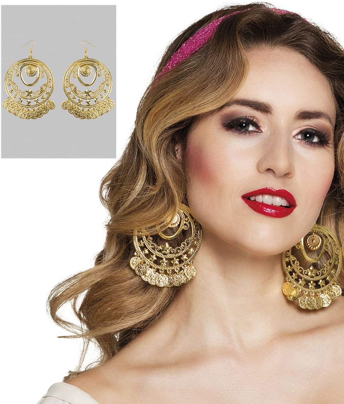 Gli orecchini per danza del ventre di Boland sono l'accessorio ideale per una vasta gamma di costumi orientali Gli orecchini a cerchio sono decorati con ornamenti dorati e stelle Rendi il tuo costume elegante ed elegante con questo fantastico accessorio Gli orecchini possono essere indossati anche nella vita di tutti i giorni Altri bellissimi costumi e accessori sono disponibili nel nostro negozio di marca. Clicca sul marchio Boland sotto il titolo del prodotto