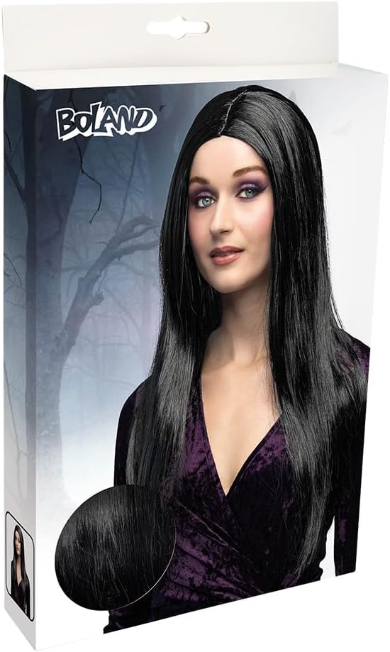 Riceverete una parrucca da strega nera del marchio Boland L'acconciatura è composta da capelli sintetici lunghi e lisci Trasformati in una strega, una principessa o vampiro in un istante La parrucca può essere abbinata in modo eccellente anche ad altri costumi Combinate il copricapo con un costume di Boland abbinato (non incluso) per completare il tuo outfit da festa